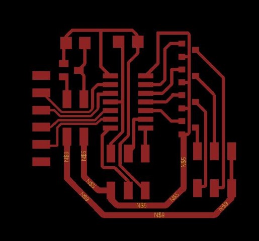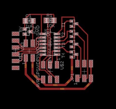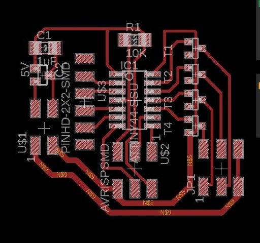 When I had to make the traces in Eagle I ran into a small problem. Because we don’t currently have the 0.10 bit that is normally used for the ATMega, so I had to try with the 1/64 bit that we normally use for traces.