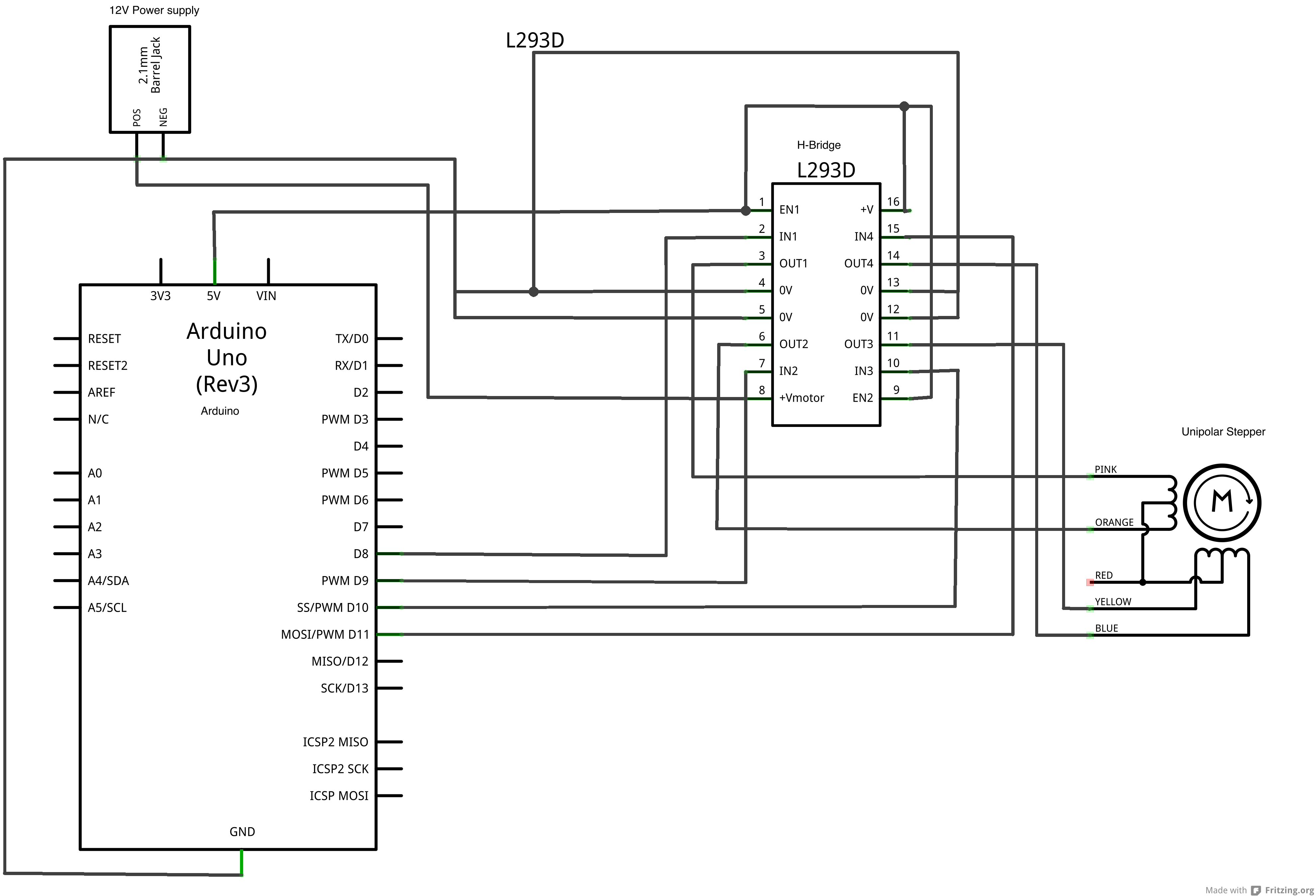 This is how I connected the motor to the H-bridge and the Arduino.