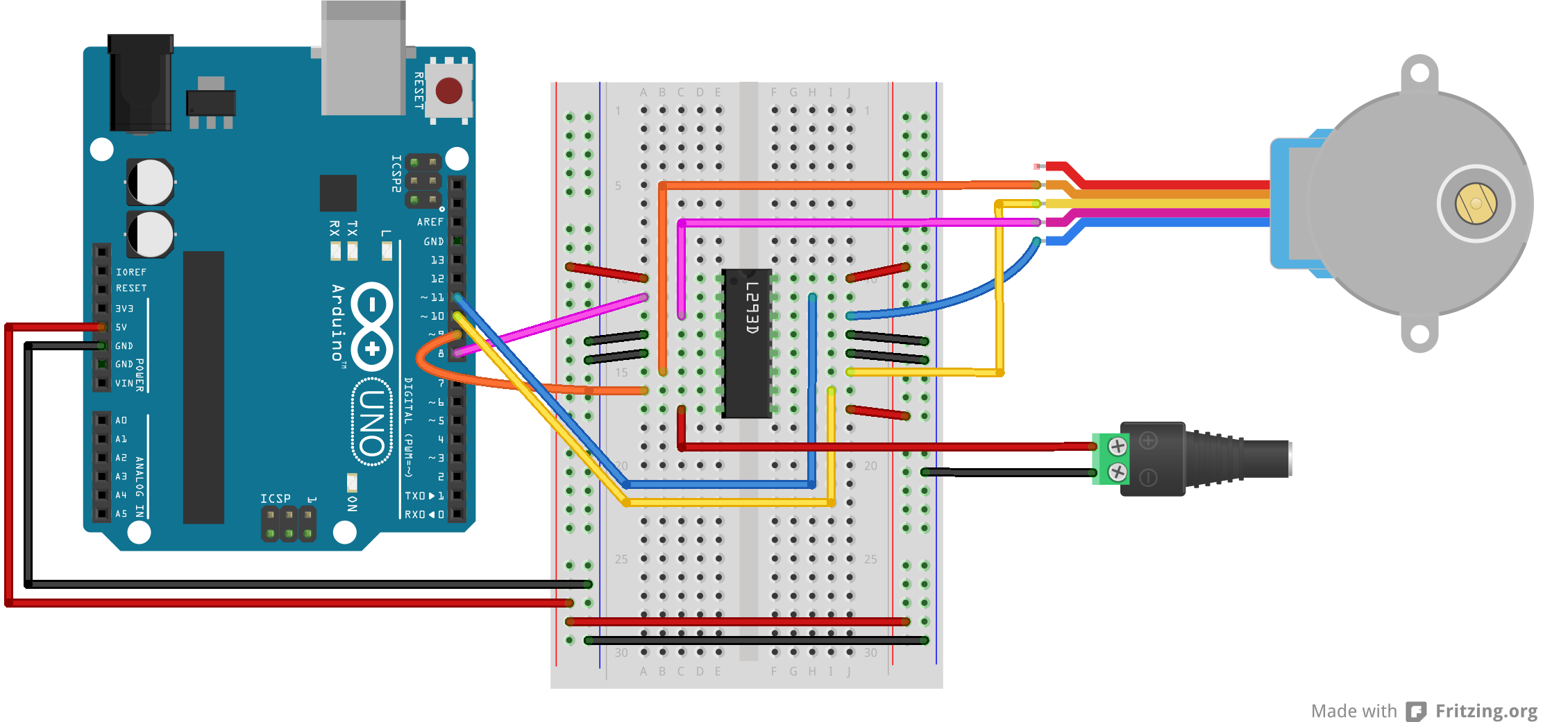 We have the standard unipolar stepper motor that has 5 wires. But in our purpose we only used 4 wires.
