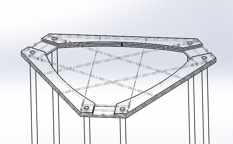 The bottom and top plates are made from several pieces of 3mm mdf on top of each other.