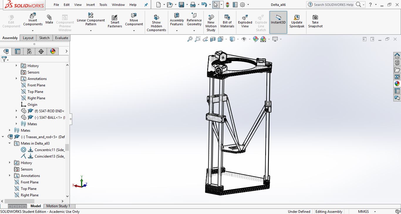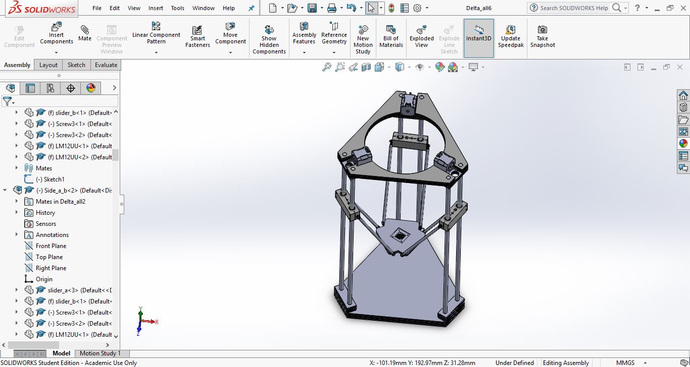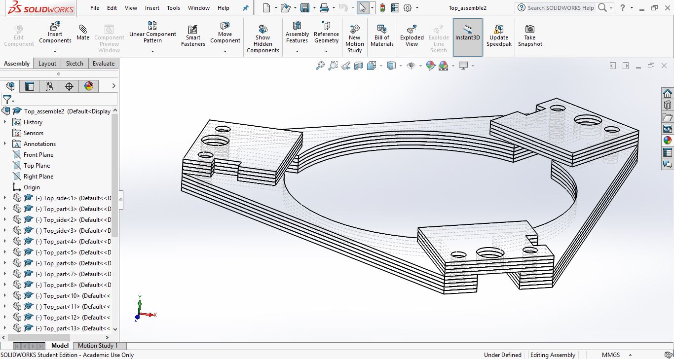 I have been working on the 3D model of the printer. I have made the model in Solidworks. I first made the parts and then assembled them afterwards.