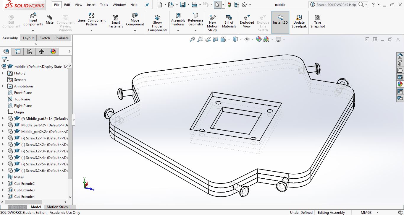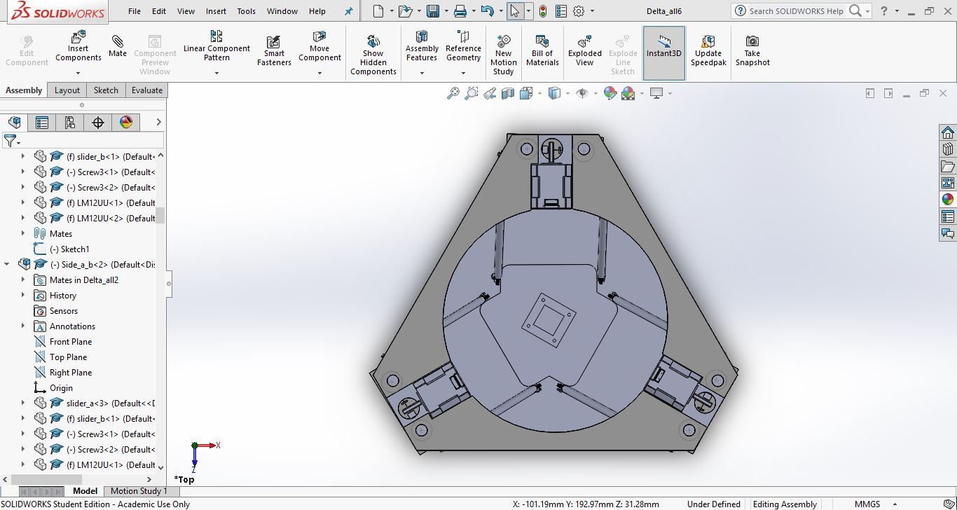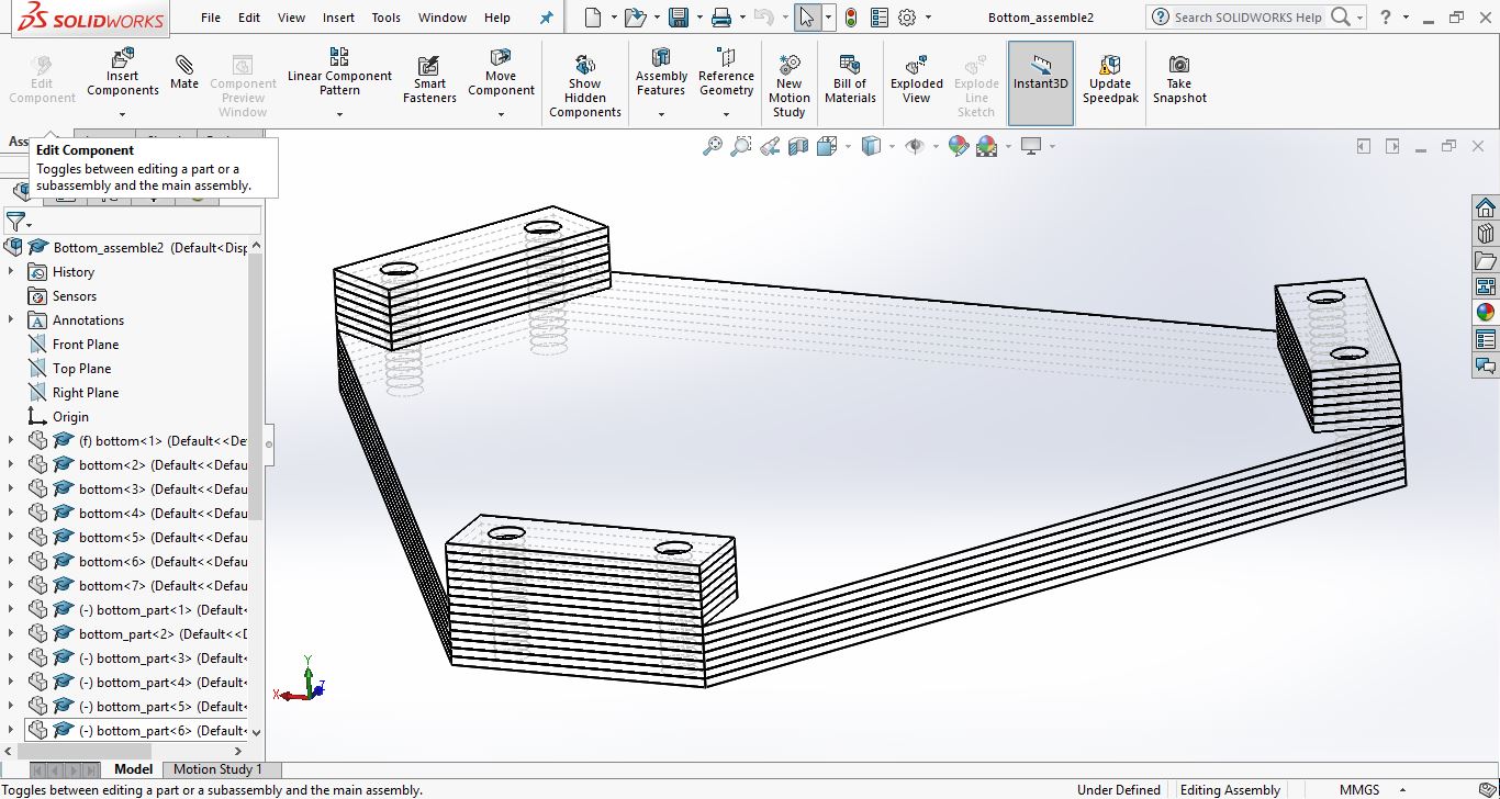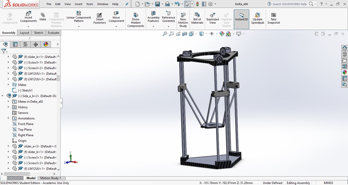 I have been working on the 3D model of the printer. I have made the model in Solidworks. I first made the parts and then assembled them afterwards.