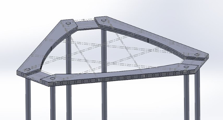 The middle piece is made of plywood. And the side bars is 3D printed pieces.