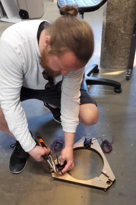 I helped twisting the wires so they won't be tangled up in each other.