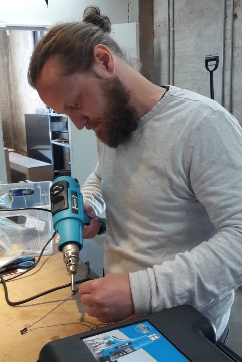 I soldered some of the cables together with Peter. We have added shrinkable tubing to the cables we are putting together so the wires whon't be exposed. Peter heated the shrinkable tubing