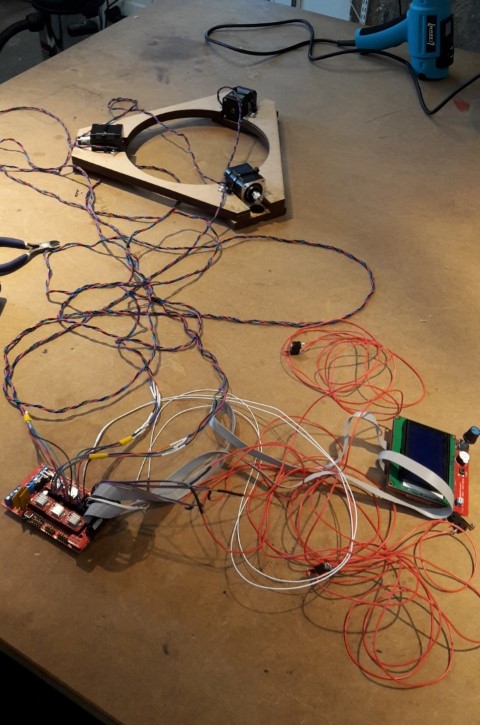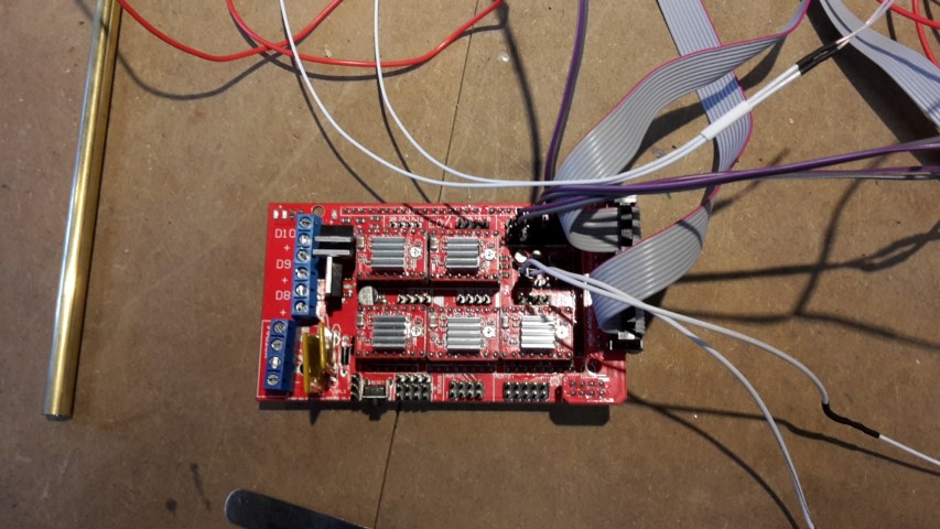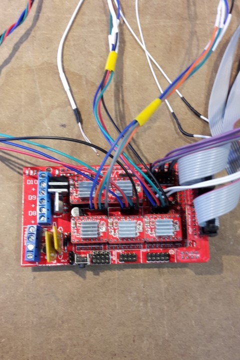 The motors wires are attached to the Ramps.