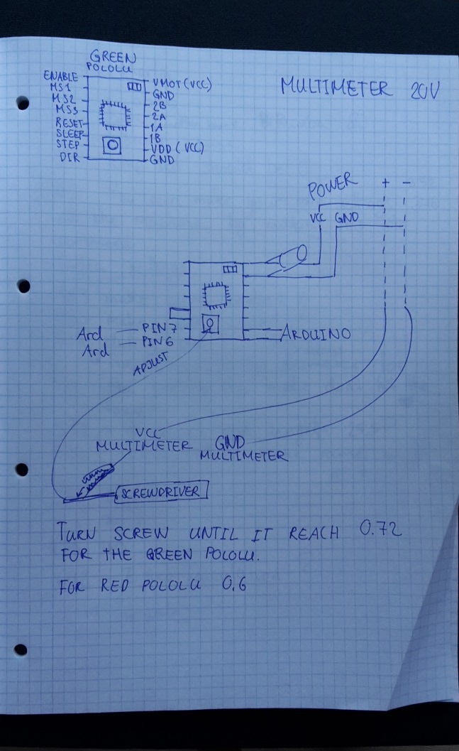 I adjusted the Pololus by using a multimeter, a breadboard, Arduino, 100 uF capacitor, wires and a power supply.