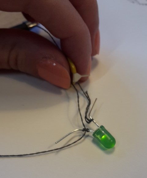 I started out with making this test with the conductive thread and an LED too see if it worked. It did.