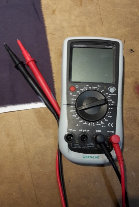 I then tried to test it with a battery, and tried turning the battery different ways to see if I was turning it the correct way. But there was no light. I then tested the thread with a multimeter. The multimeter also showed that there was connections where there should be none. I removed the LED too see if there were any connection between the two lines but couldn’t see any. So I had to try re-sew it if I wanted it to maybe work.