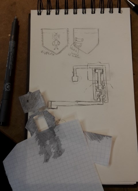 Because the extra buttons wasn’t part of the design I have added marks on the fabric with the robot so you can see where to push the buttons. I made some of the figures by hand and one of them in inkscape and then cut it on the scan and cut in some of the leftover materials that we have.
