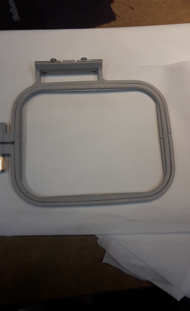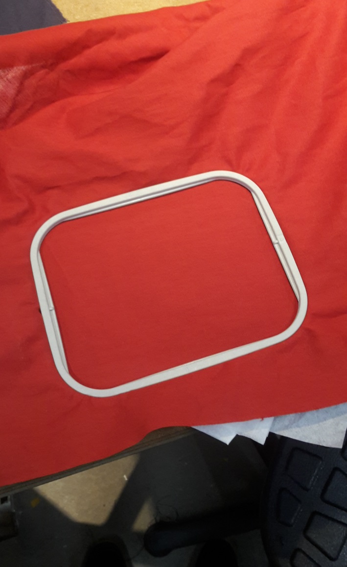 Then place the fabric on top and then the last piece of the frame on top of the fabric. Note here that there is a little arrow on both frames on the top. These should be next to each other.