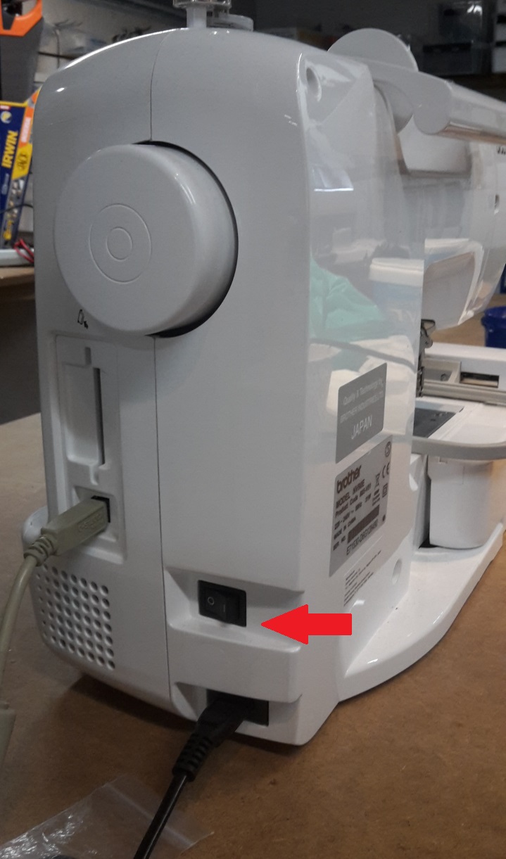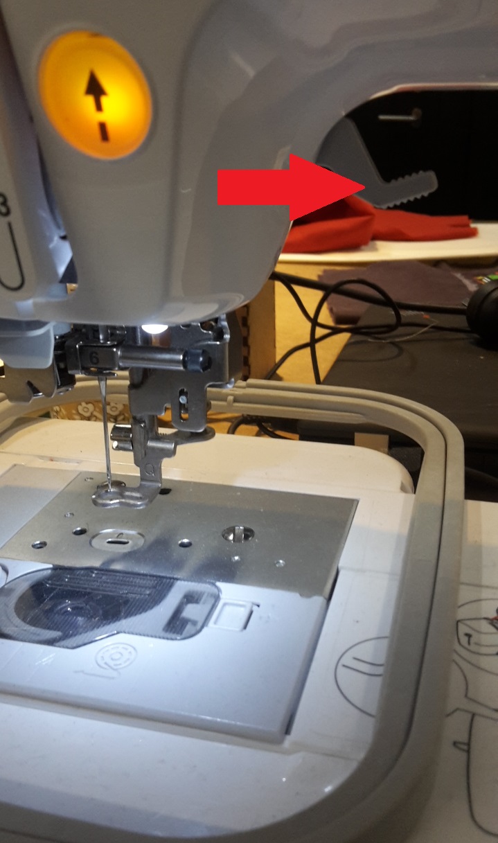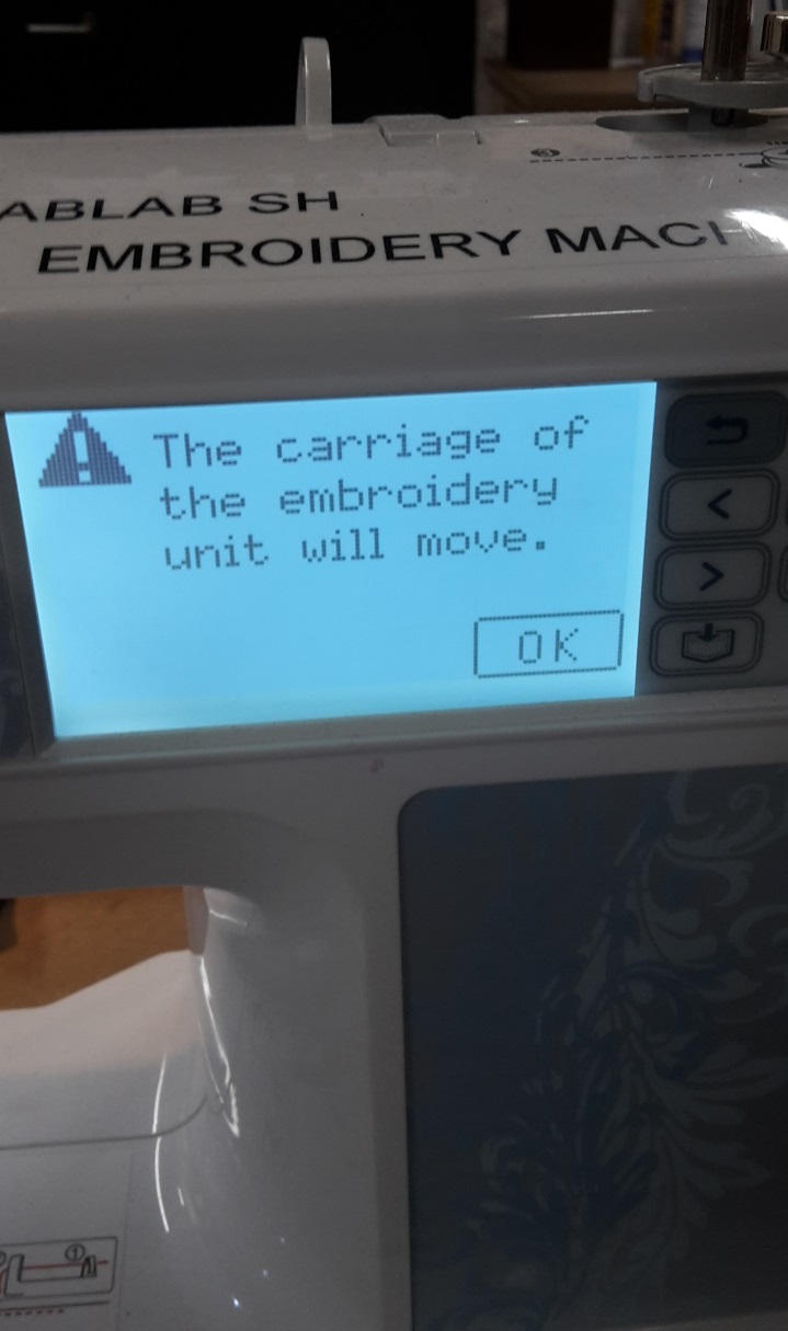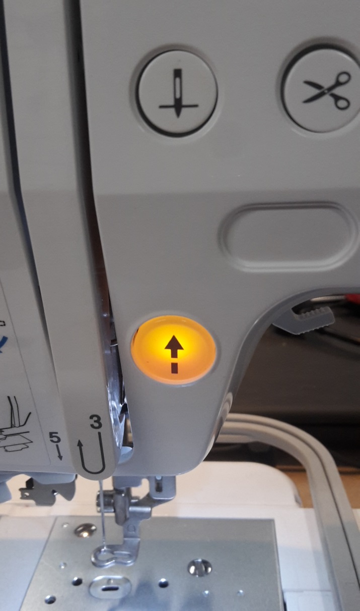When I choose a design now the machine will complain and say that I didn’t put the pedal down. The button with the arrow will also indicate that it is not ready to begin.