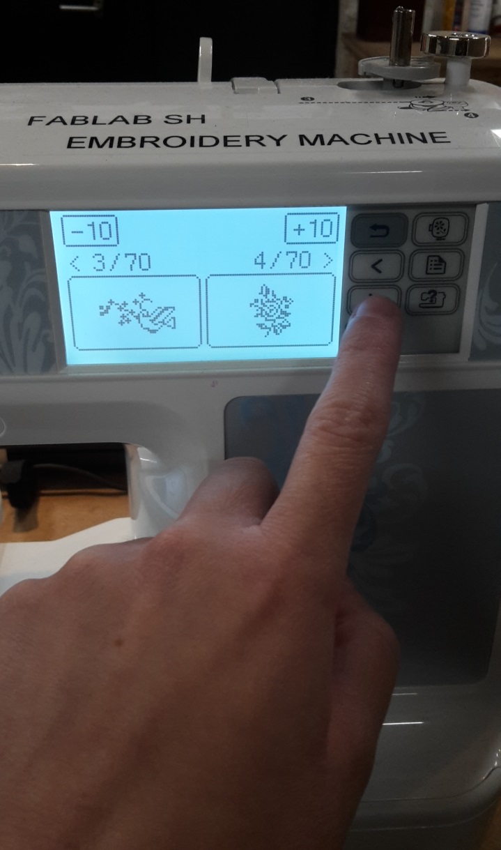 There are several designs included on the machine and you choose them by touching the screen and going left or right on the arrows.