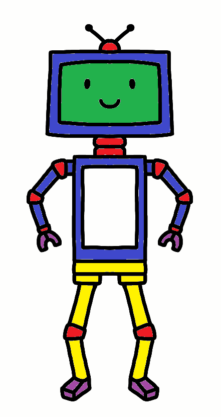 I also made a robot man. I first drew a sketch and afterwards drew him on my tablet where I have a mirror function, so he became completely symmetrical. Afterwards I put him in paint and just coloured him in different colours. I did this because the sewing program for the embroidery machine recognizes different colours, and the robot can then be sewn in different colours.