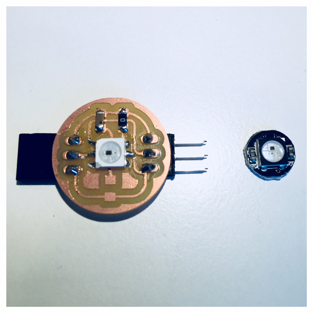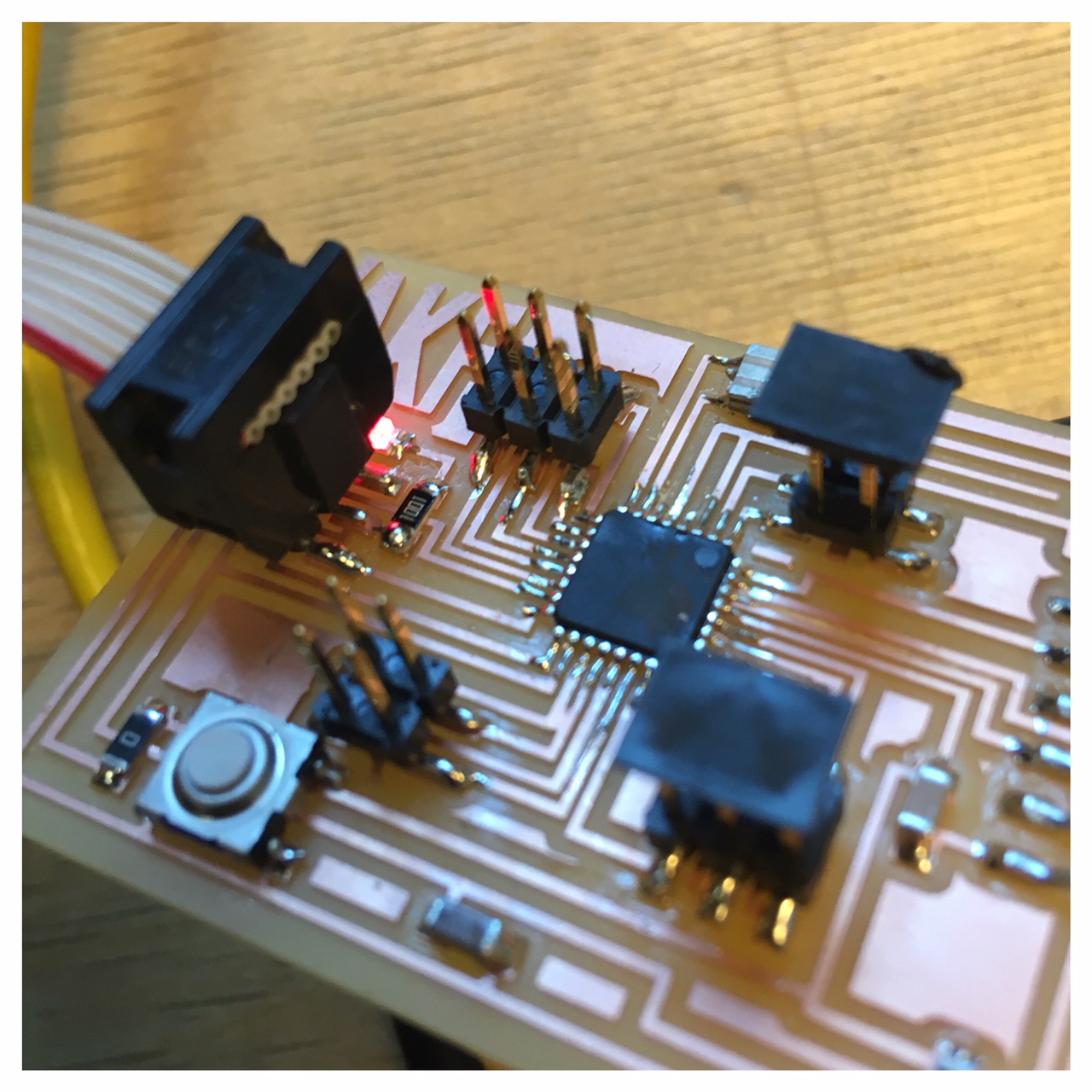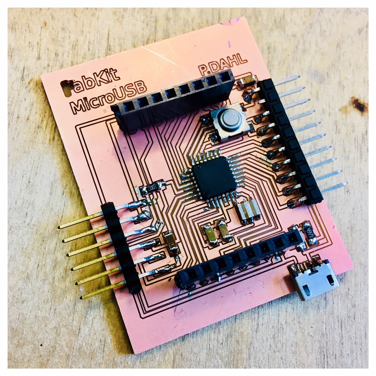 After good amount of meetings and tinkering together with teachers at a local primary school and some facetime meeting with Heikki in Finland I realized that I will get the best result for this first product with a board where the teachers also could do some experiments. Here I was quite inspired by Neil Gershenfeld's talk about Seymour Papert's Seymour Papert attempt with the interactive turtles and the importence to make the kids make the interactive turtles. I think it's important to get the teacher to make their own version of the lamp, with their own design and connect it to my main lamp for creating the network. My thoughts are here that the teachers then later on can experiment with the kids. In this way, I think I would have the opportunity to pass a learning experiment rather than just giving them a finished product. So my dream is that this could be a course in the primary Schools' Maker Spaces that I work with, where students produce and experiment with the lamps that are connected to other lamps in other school labs.After my meetings with the primary schools teachers I decided to try to make a version of a FabKit 0.4 board and a version of the Satshakit board and burn bootloader as an Arduino so the teachers have the opportunity to use Arduino IDE for programming. My reason for doning this is a hope for getting teachers to code/program more in the schools Maker Spaces than what I see today. The few teachers who do a little coding and programming in the primary schools in Denmark are familiar with Arduiono IDE and in this way I hope that this project can make them work more with mico controllers and IoT projects with the children. So a kind of kickstarter project for them to engage in.