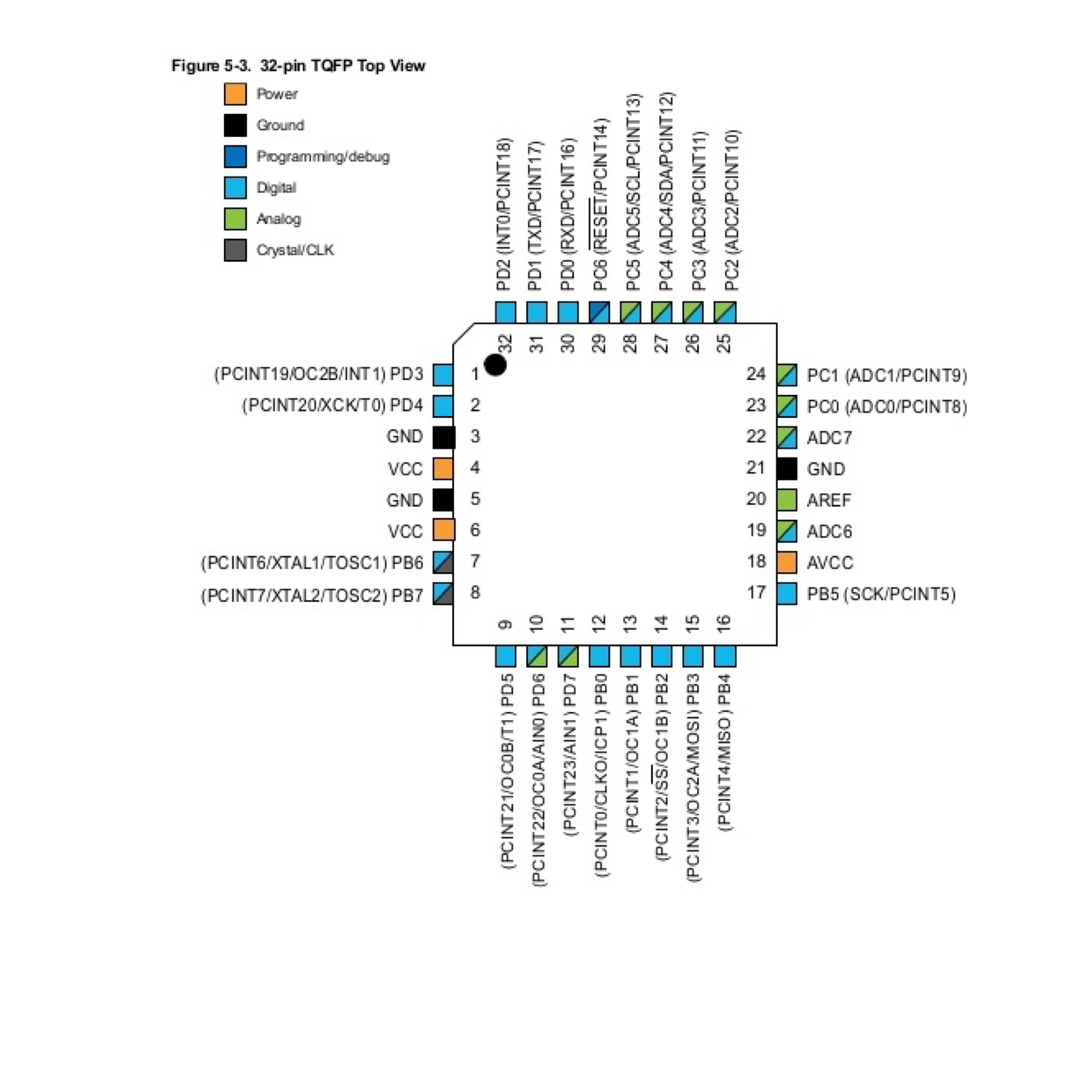 I started out with reading the datasheet for the ATmega microchip (8 bit, 32 KB) that was the microchip used in bouth boards (the FabKit 0.4 and the Satshakit) trying to figure out where each pin went and what it could be used for. I found this little great picure at the ATmega that was really helpfull.
