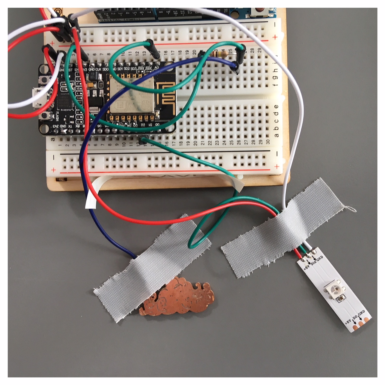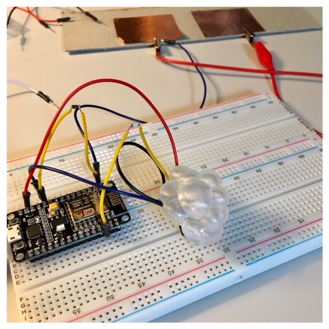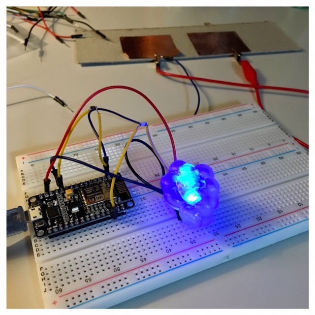 Material list: (I'm beginning to think a possible material list through, so I don't end up missing some importent item for the lamp, having to bye it in the last sekond or maybe not being able to get it). For the fanal projct at the moment the material list includes flourorised acrylic sheets 4 mm thick in blue and white colors maybe try a frosted acrylic. Birch veneer for the base also 4 mm. One Spark Core for each light. One Raspberry Pi with ethernet cable and power or a Linux server for connecting the lamps. LED strips for the light. Conductive paint. A 4-wire-strip. 10 MOhm resistor. Good quality cell phone charger power supply, I have some old iPhone chargers I think I will use.
