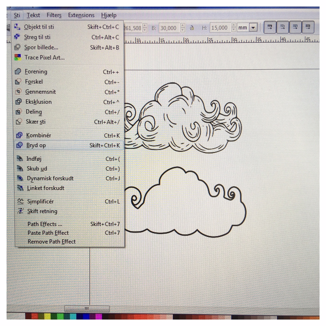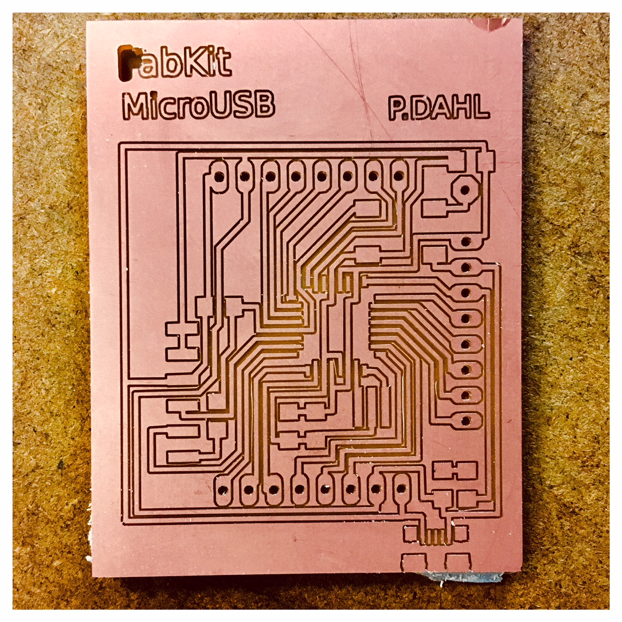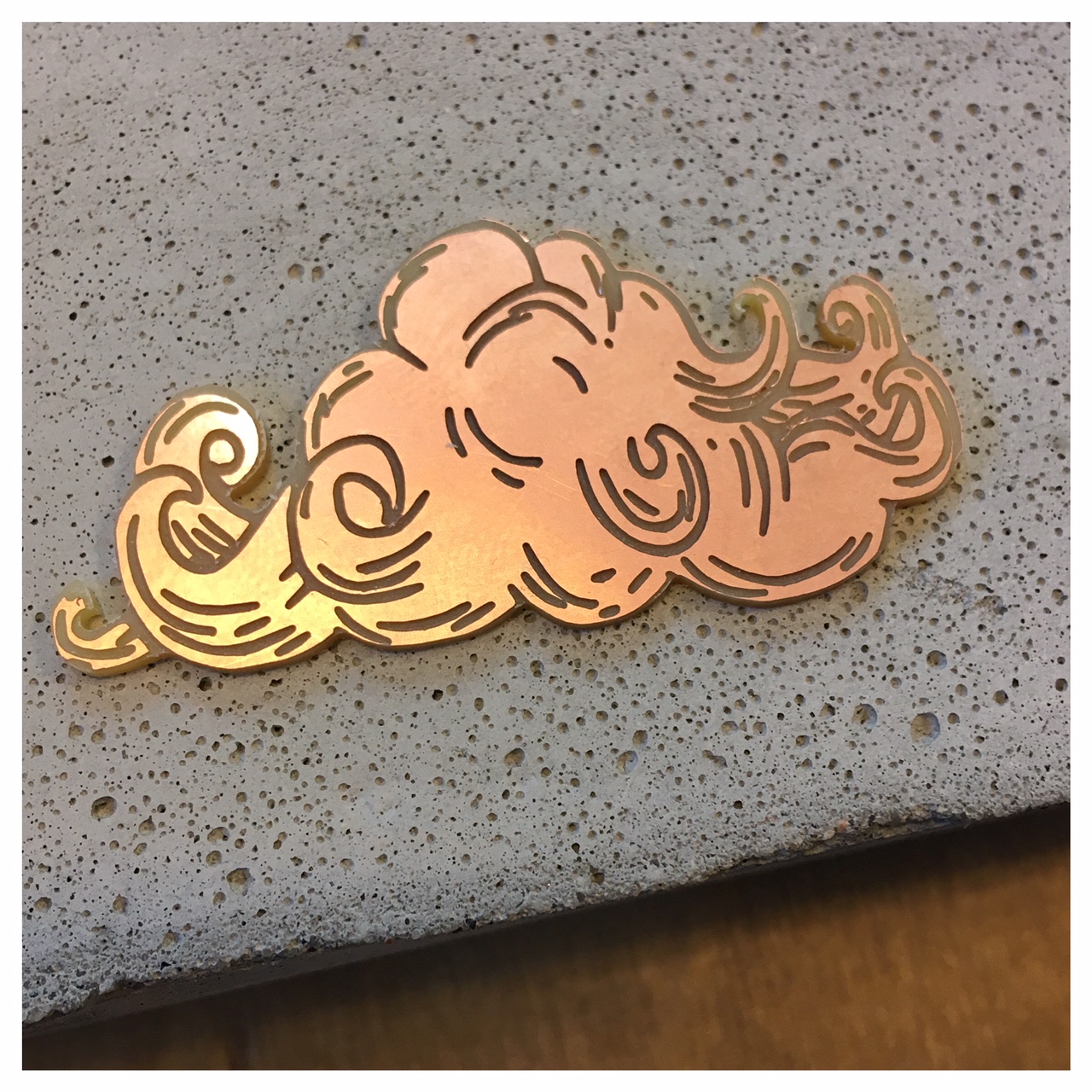 At the moment I like some kind of touch button on my lamp and I'm also working with a code part and microcontroller set up where there's just such a touch button. I have therefore made a small copper cloud with the same file I used to laser cut and engrave the acrylic cloud for one of the lamps. For the cobber cloud I used Fabmodules and the Roland mill. I engraved the curves of the sky just as we make traces on the PCB and the sky's perimeter like when we make an outline or cut out. I think it came out butiful and when it's glued to the concrete base I think it's gonna be great.