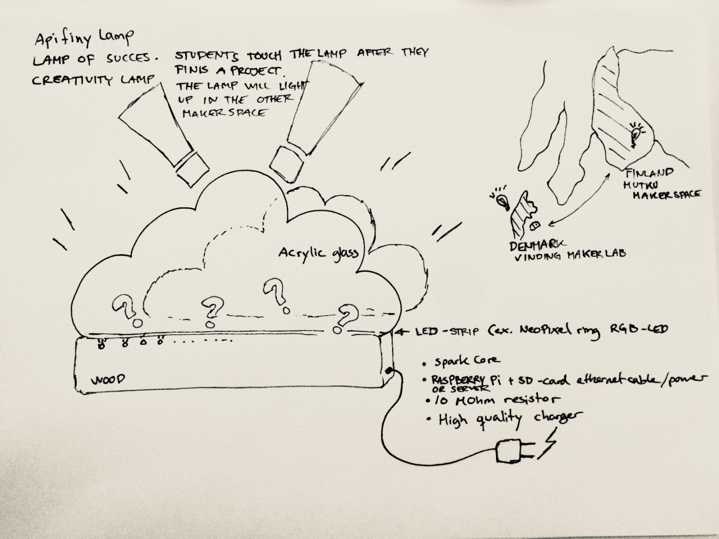 In Mutku Maker Space at The Arabia School I was really inspired by Heikki, who is a teacher and Maker. We are teaching similar subjects and are managing similar size Maker Spaces. So we had the idea of facilitating interactions between Vinding Maker Lab in Denmark and Mutku Maker Space in Finland. For a start we will be pairing up student groups, aged 10-12 across the borders. We want to make different processes with the kids in the attempt to constructing “The Epiphany Lamp” and hope for different lamps in the end.