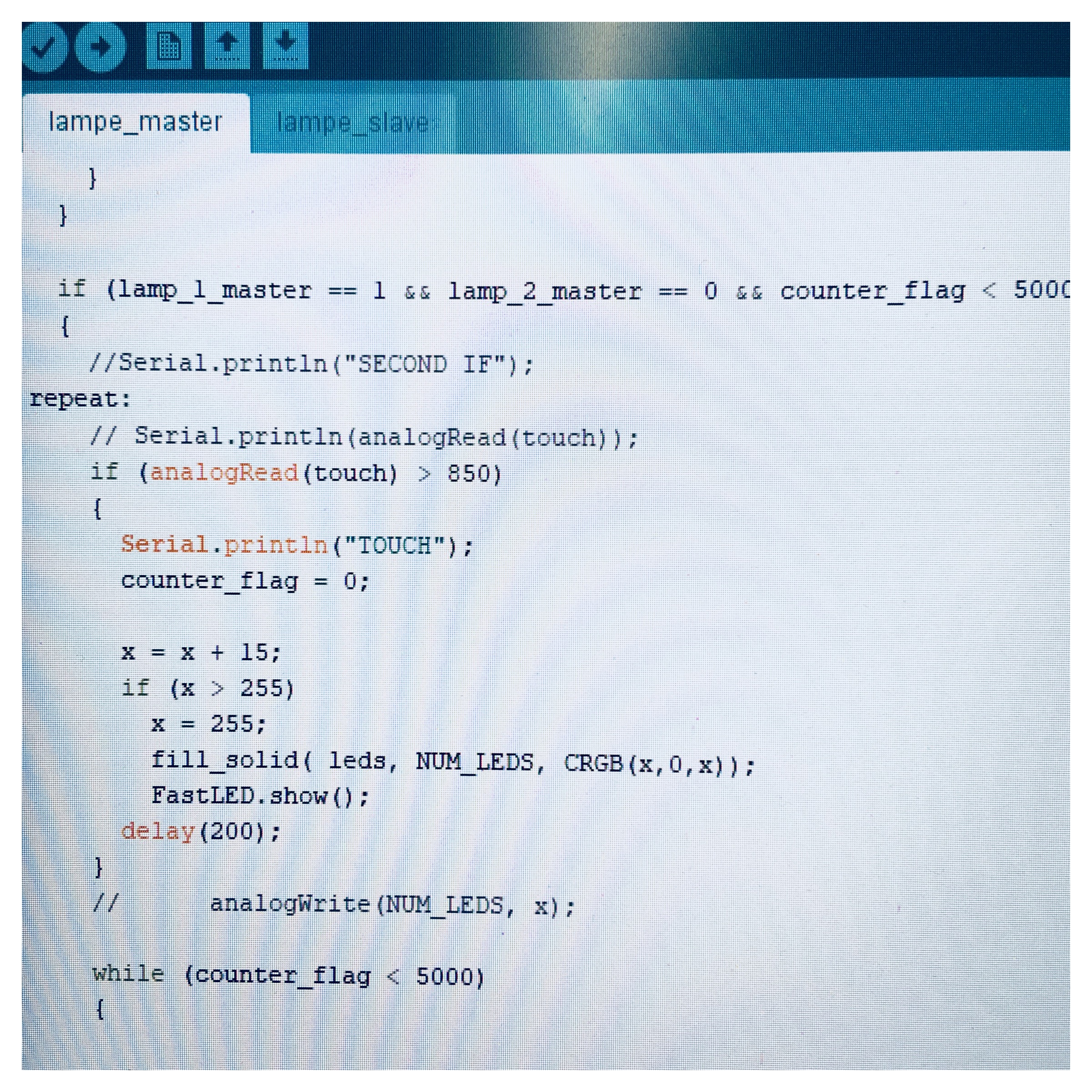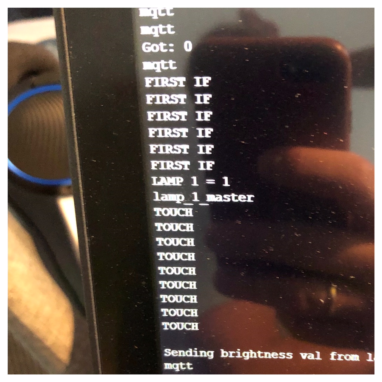 Then I downloaded this software called PuTTY, where I could monitor signals coming into my computer and which port it's using. I could see when I touched pin 2 (the ADC, TOUT) on my esp I got a "TOUCH" signal comming into my computer and "FIRST IF, LAMP 1=1, LAMP_1_master, TOUCH, TOUCH..." So it was actually performing my code.