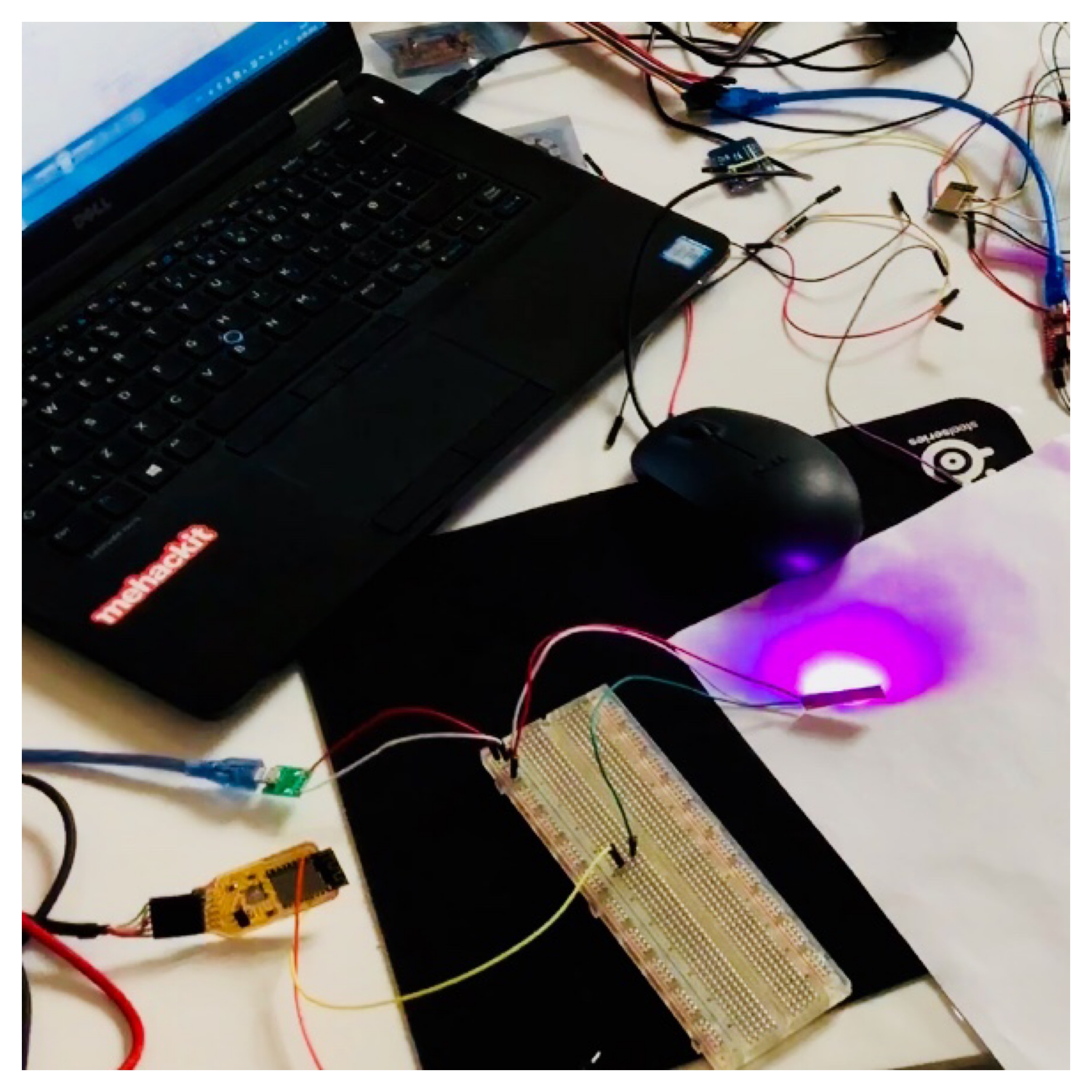 Underneath on the pictures I'm sampeling some RGB-led's ws2812b where you in your arduiono code can control different colors, timer and how many led's you have in the circuit. I am using the Arduino UNO and breadboard to learn the different possibilities and code parts I need. I also want to sample this wi-fi module to connect the different lamps with a server and make them interact.