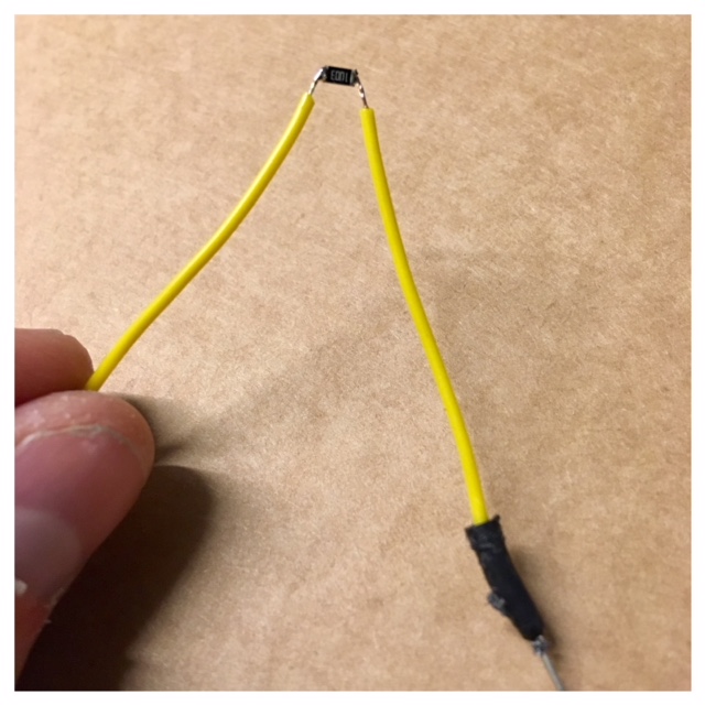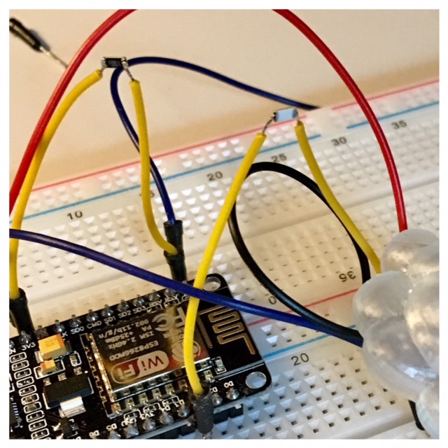 On the images above I'm in the lab working with an ESP-12e module and a breadboard and suddenly find out that I need two pieces af 100K resistors. In the Lab we only had the little SMD components (for soldering on PCB's) in the inventory, therefore I soldered small pin-cables on so I could use it in my breadboard. It worked perfectly so I could proceed with testing parts for my lamp.