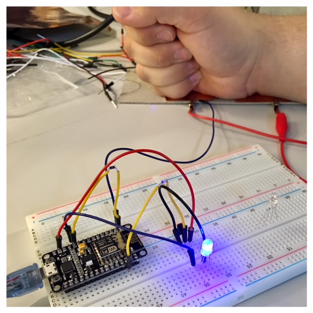 So these last couple of days I been wondering what to take with me from the last weeks in order to completing my final project. I know for sure that I need to understand my board and my final project better, so I have tried to make the lamp with an NodeMCU esp12-e and two ws2812b 'adreeseble LED's to get a better insight of my final project.