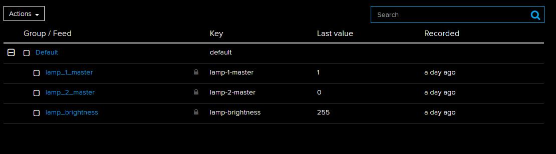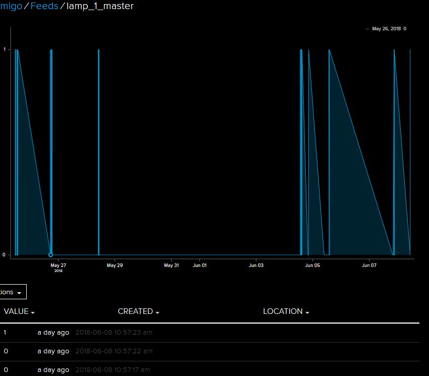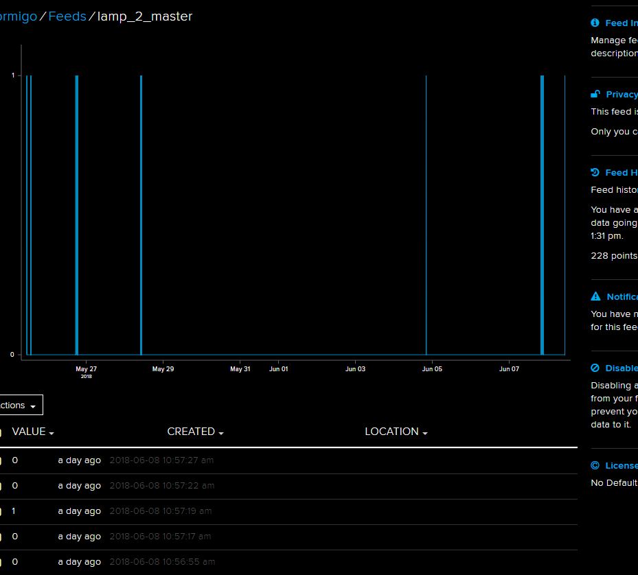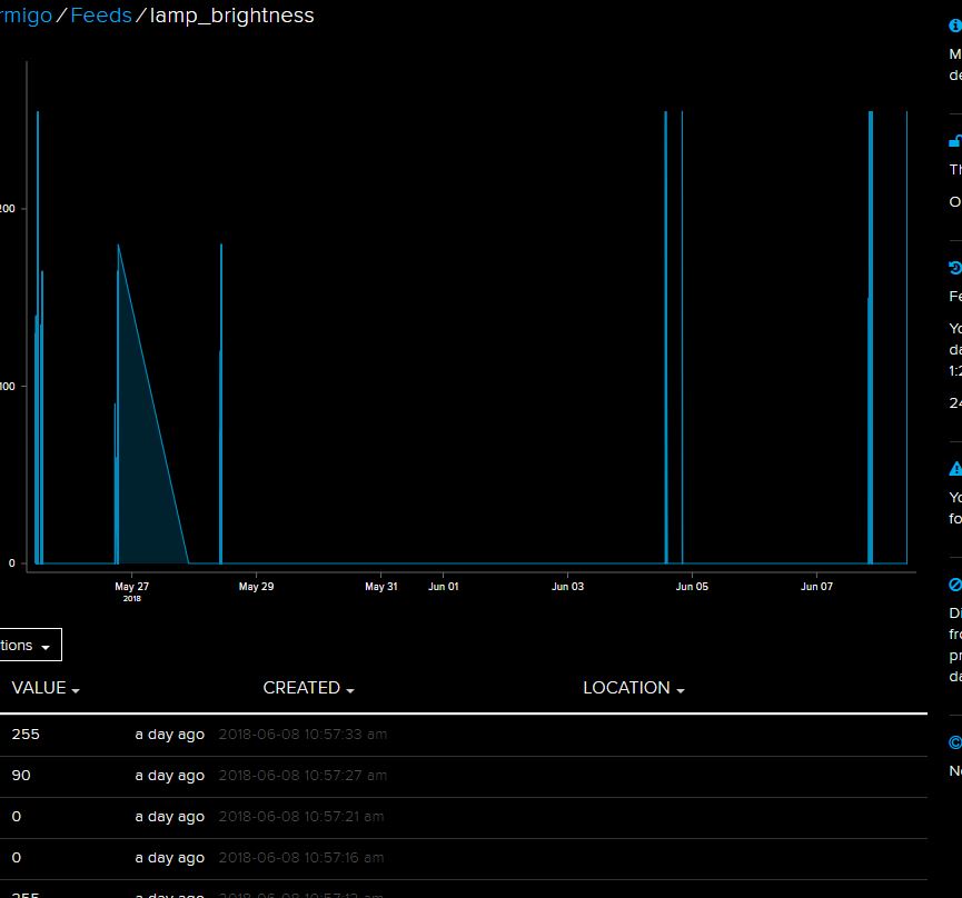 It also keeps a protocol under feeds where I can monitor the date of the interaction. I put in a few different pictures. One from lamp1, lamp 2 and one for the brightness.