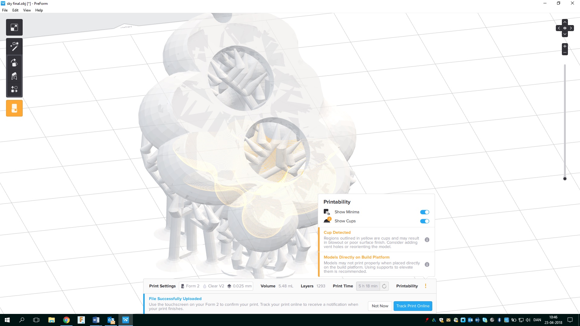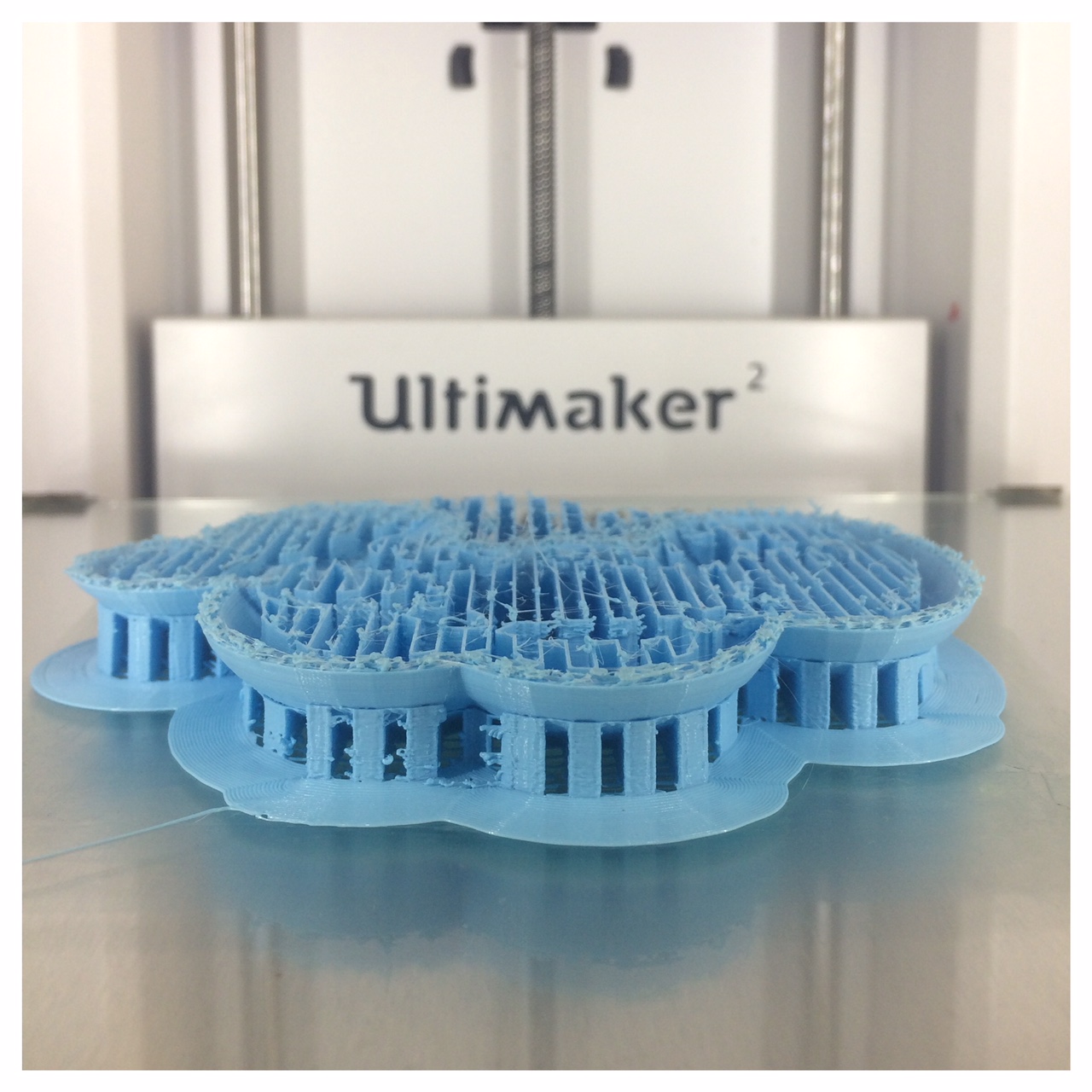 I wanted to print a cloud that was quite big, so I made my design around 6 x 4 inches and ended out with a print that would take 21 hours. But in our lab, the 3D printer may not run unattended so I made an appointment with our lab manager to start the print in the morning, print all day and then put the print on hold until I could continue the next morning.
