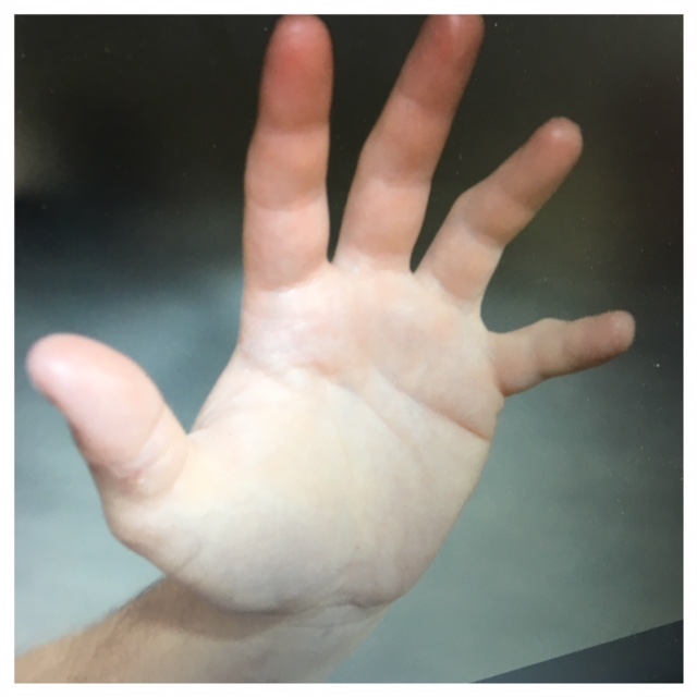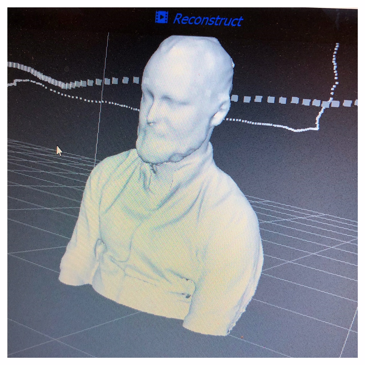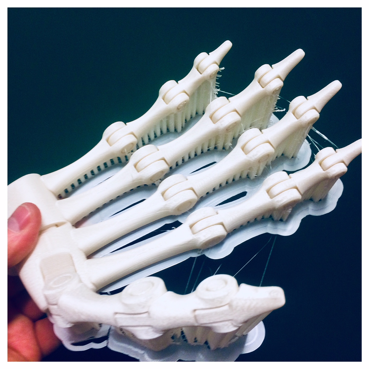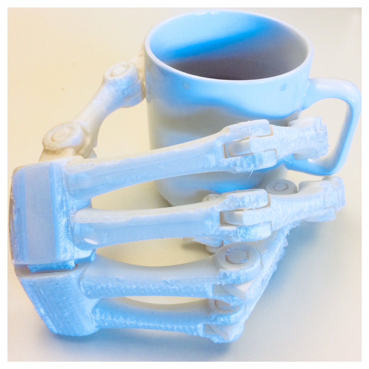 For scanning I wanted to try to scan my hand. I have printed this robothand from a stl-file I downloaded from Thingiverse. I wanted to print the hand to test the use of printing moving joints in one piese on the Ultimaker 2+. Now I have scanned my own hand with iSense, a hardware camera for 3D-scanning on the iPad we have in the lab. We used a software for the scanning proces called itSeez3D. I really want to try creating moving joints on a 3D-scan/print of my own hand.