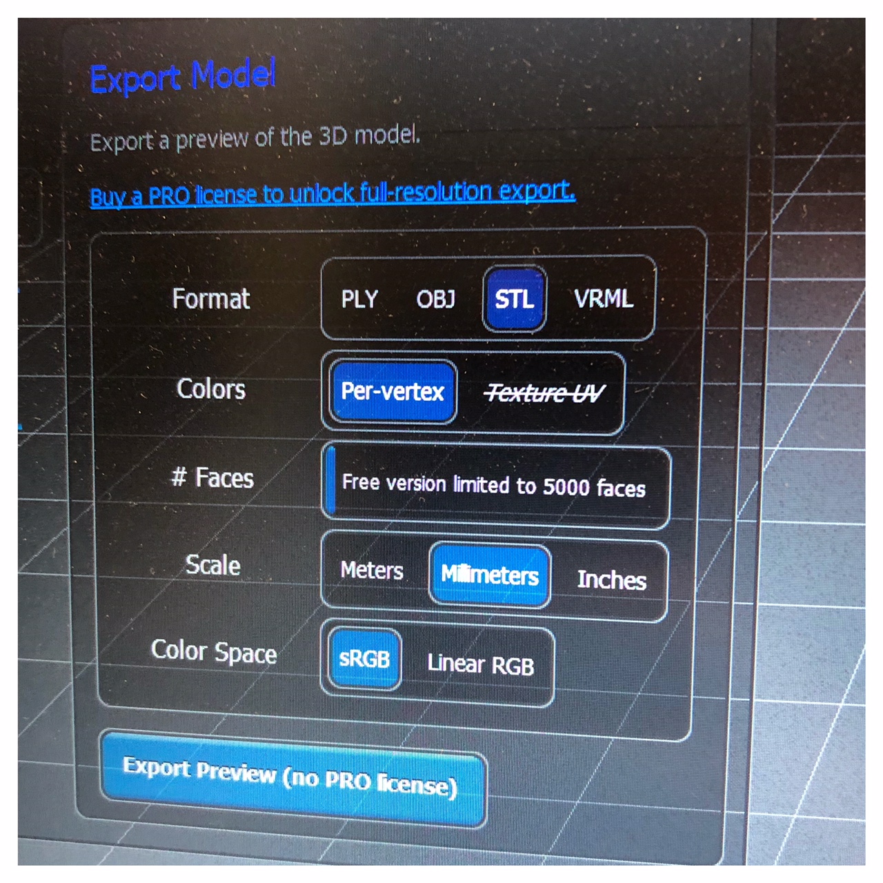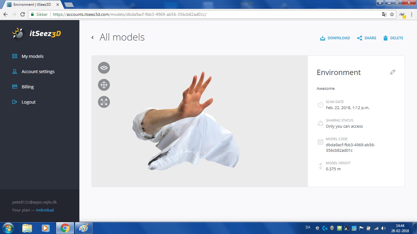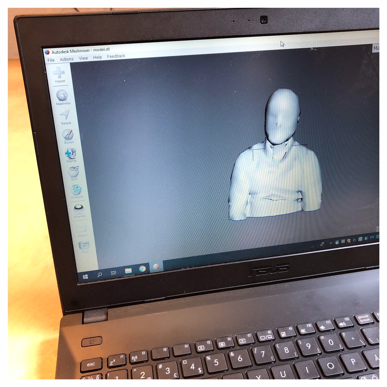 I worked with the 3D-scan of my hand in itSeez3D togehter with a scanner to attach to an iPad. This scanner is called iSense. The scanner still works but the software it comes with is not available anymore. So I actually thin it scanned pretty nice, but when I came to the fact of downloading my files it came with the cost of 10 dollars per each file. So, of course, this is the disadvantage of some free apps.