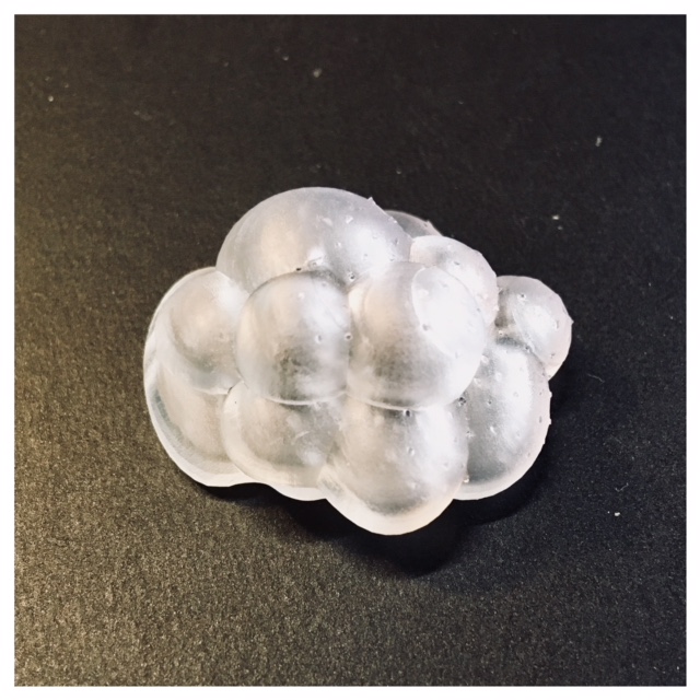 I have never before worked with, or tried a 3D printer that is printing in resin. But our local instructo Lorenzo had a FromLab2 with him, which I have been very keen to try. I've been struggeling a bit with this new printer a couple of times now, because it works a lot different from PLA printers. But finally I managed to print a mini version of a cloud in transparent resin. My troubles with the printer was mostly about my files as it has many areas that causes a "cup function", where the recin where kept in the cloud as in a cup. Therefore, I had to make some holes in my model so the recin could ran out.