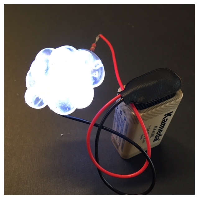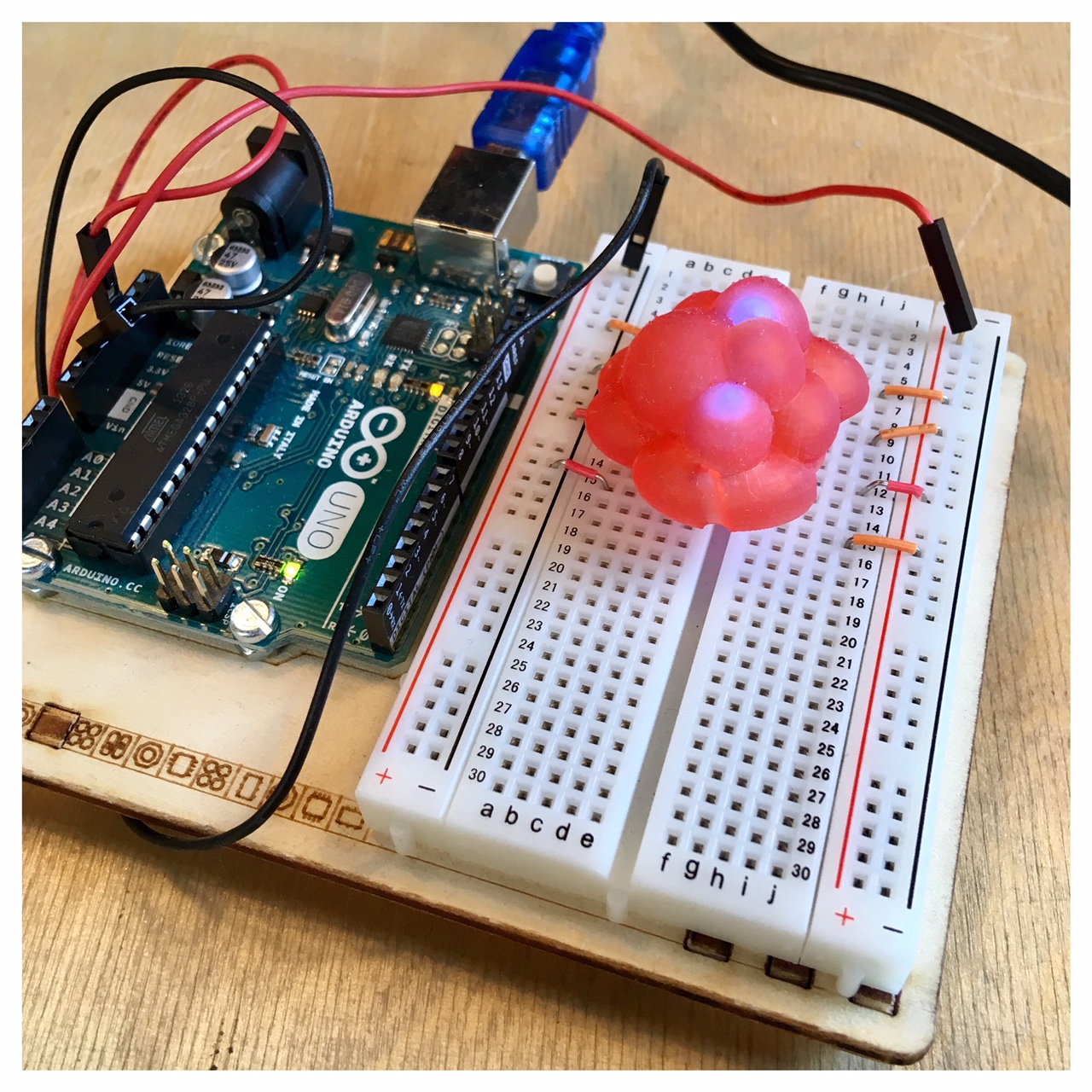 When using a Formlab2 printer, it’s essential to post-cure your 3D prints. Post-curing enables parts to reach the highest possible strength and become more stable. This step is especially important for Functional Resins. For example, post-curing is required for a successful burnout and resin almost doubles its strength with post-curing. I post-cured my cloud with a UV-light. I placed my cloud in a little foilcase I made from tin foil we had laying around in the lab. Later on (mostly for the fun of it) I made a little Arduino UNO set up, with two UV-diodes which fitted perfeltly into the cloud. It gave a nice light and dried the resin at the same time. For more information about post-cure of resin prints visit FormLabs webpage here: post-cure of resin prints