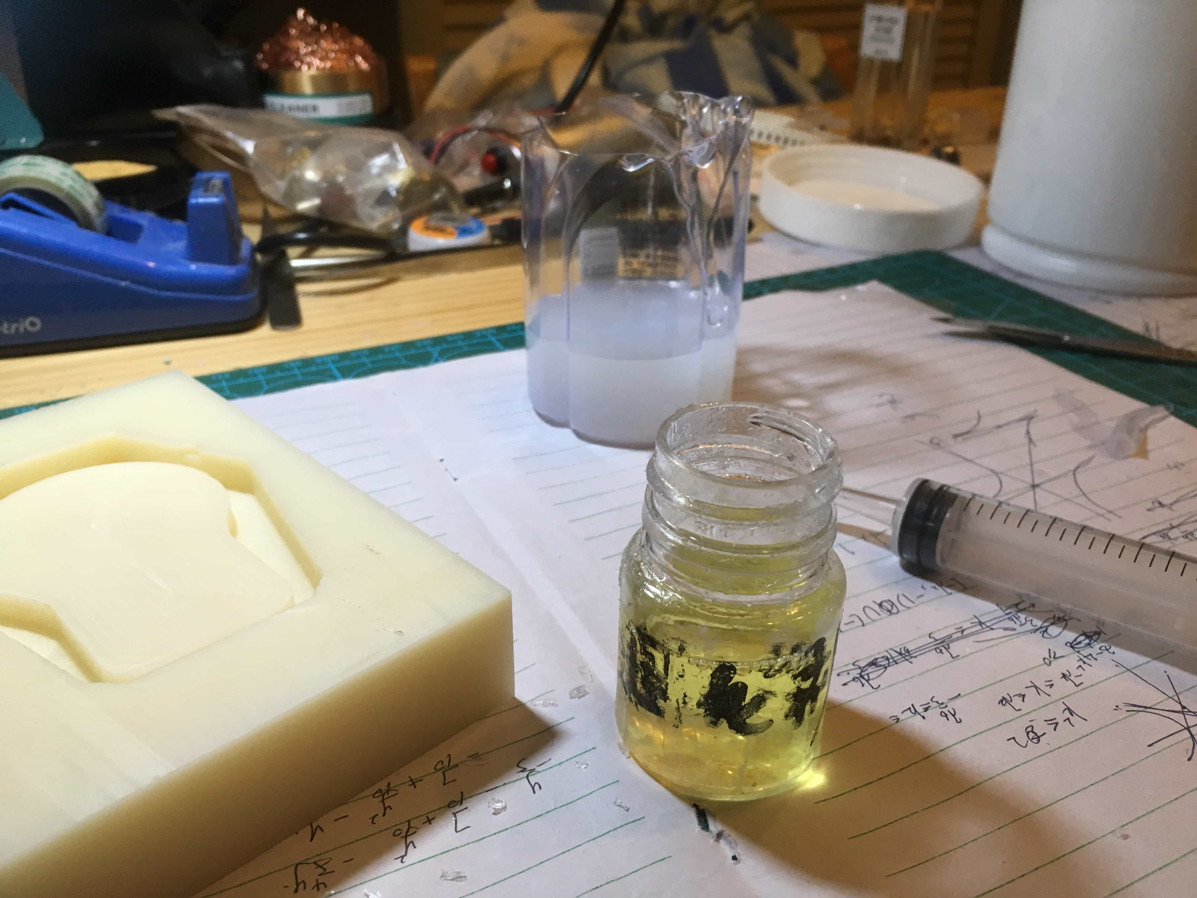 Now it is time to mould out the lightbulb. I am using epoxy to make the lightbulb image, which is not flexible. So I bought some silicone to make the soft mould out of the hard, ABS outter mould.