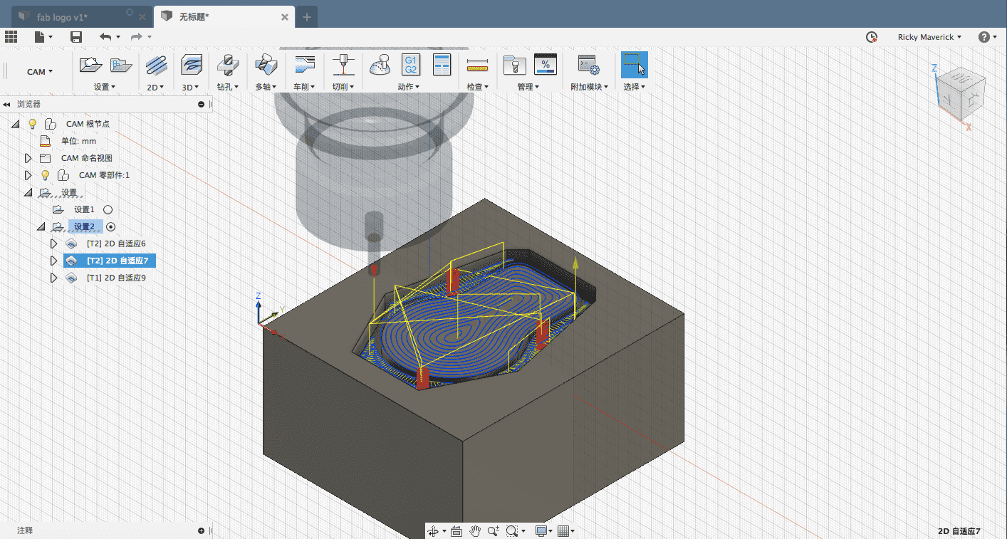 1. For the designing part, at first I made a fablab logo, but when I checked the machine, I found that it contained too many sharp angles––also, my first design was too deep for the tool to mill. Therefore, I designed a much easier and more shallow figure.