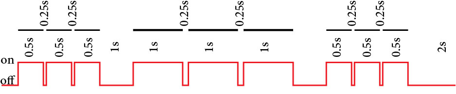 The concept I will work on to my make the light blink as ( SOS), from what I read on the net about programming, you need as the first step to identify what your program should do (function), when I push the button the light will send SOS light message as long as I hold the button down. so I found the code for SOS ( --- __ __ __ --- ), I will make each dash blink for 1/2 a second, and the space between each dash 1/4 second with a 1 second off between small dashes and big dashes ( waiting time ) when the SOS light end to loop it, there is a waiting for 2 seconds before it starts sending the SOS light message