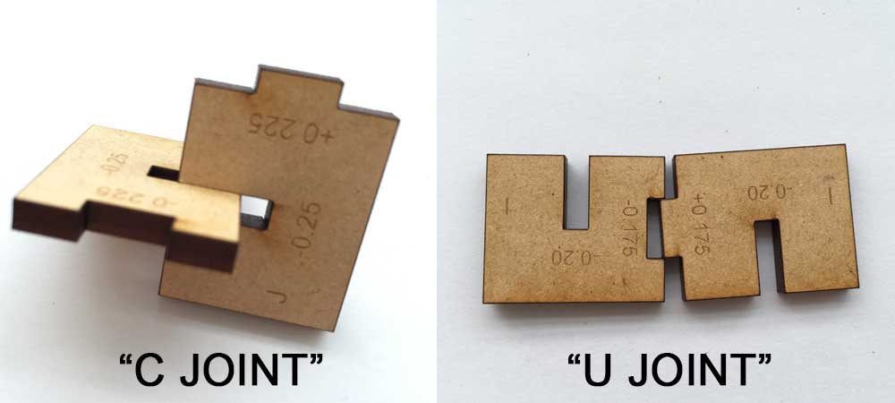 To the U joints, we found two useful values. A smooth fit, ideal to sliders or puzzles of +0.075/-0.075 and a strong fit ideal for press fits, of +0.125/-0.125.