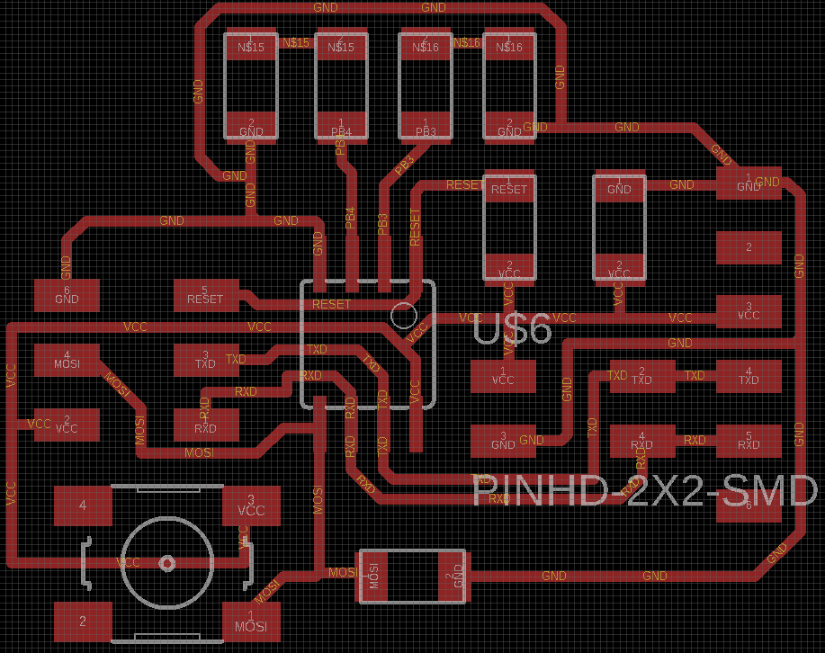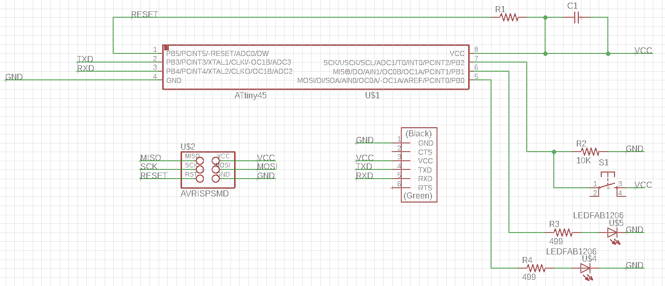 For this assignment I will make an attiny45-based board with a button, similar to the 'electronics design' assigment. This board will serve too for networking week,