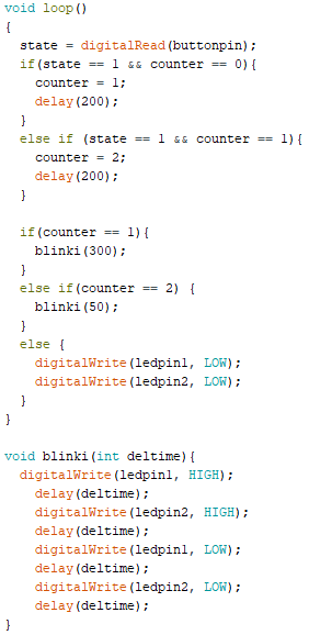 Adding some conditionals, I can make the LEDs behave different when pressing one more time (counter).