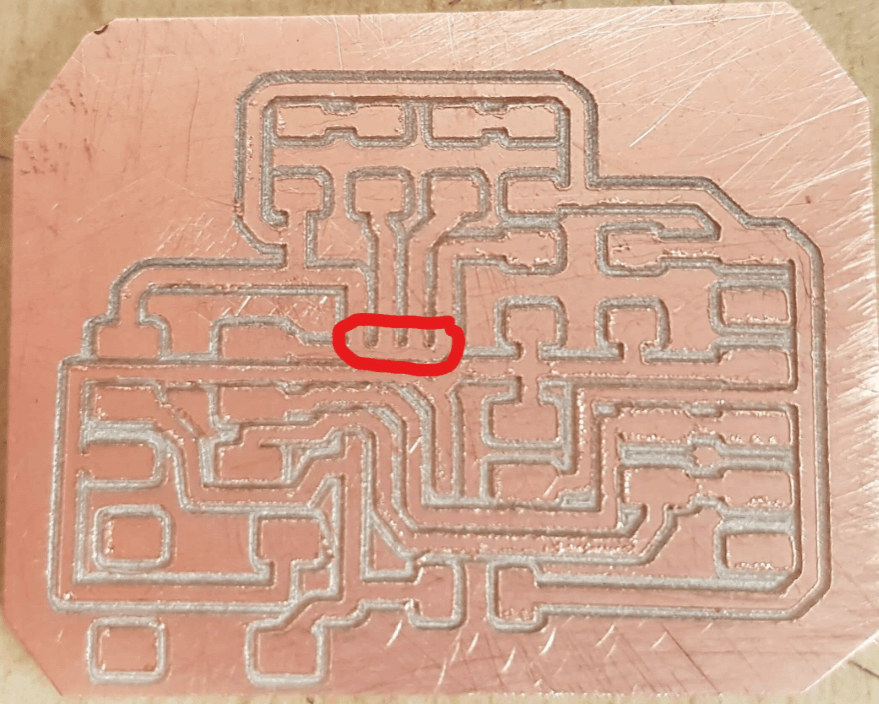 After milling noticed some tracks were connected! Used a cutter and then cleaned with a toothbrush.