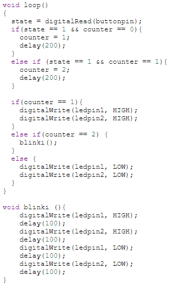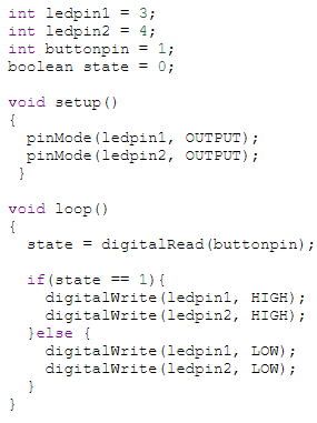 Similar to previous weeks, the code will read when the button is press and turn the LEDs on.