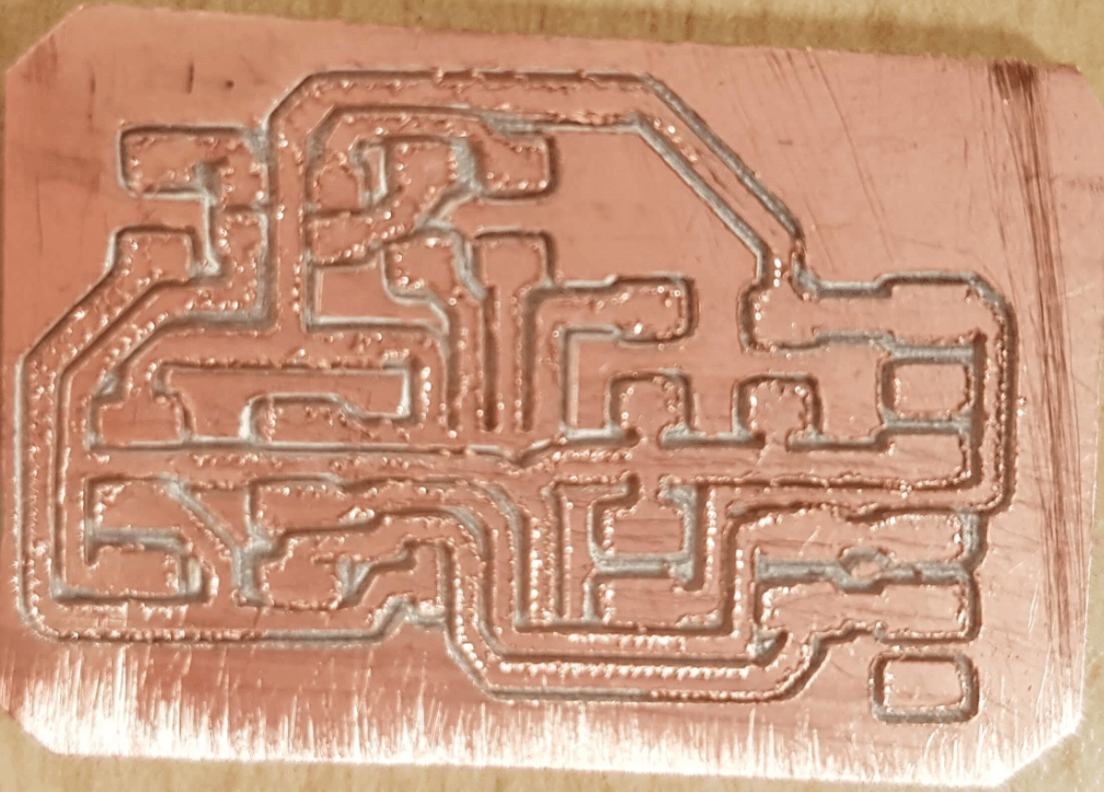 After milling noticed some tracks were connected! Used a cutter and then cleaned with a toothbrush.