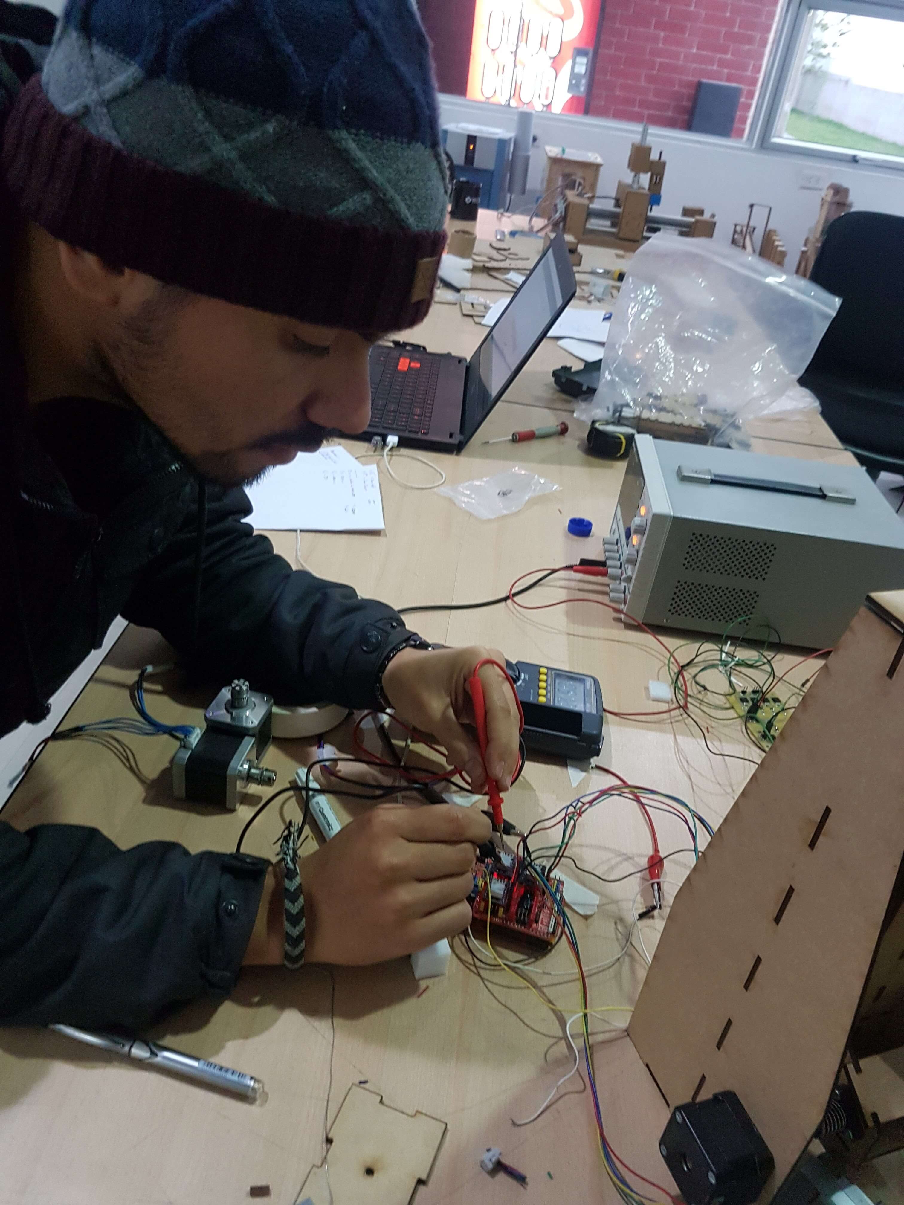 My work in this assignment was to write the first code and tuning motor movement. We decided to use Arduino One boards (3), with a CNC shield for stepper motor control.