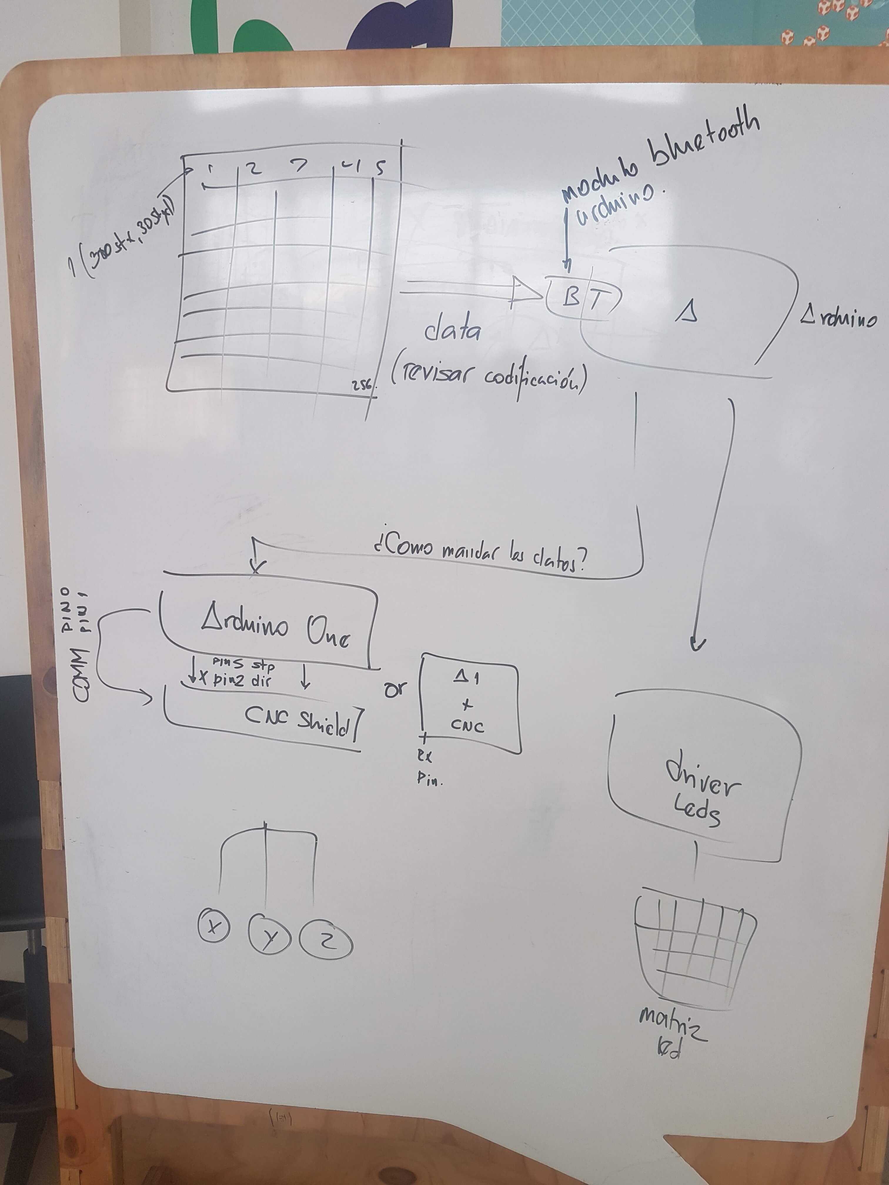 We were using one Arduino One to recive all info from the UI and this board will be sending serial data to the other 2. Another board would be carrying the CNC shield, and will be the "motor"