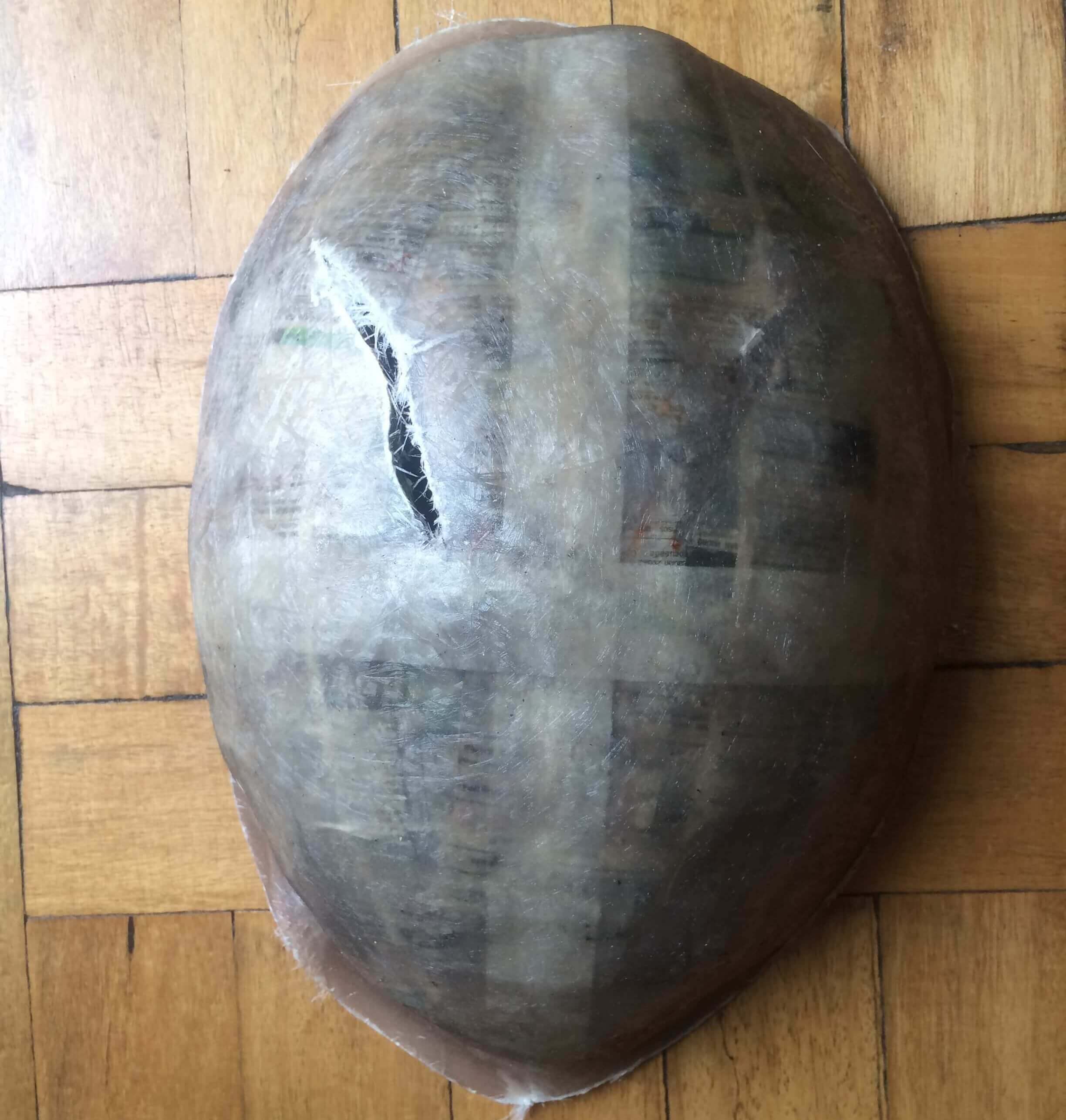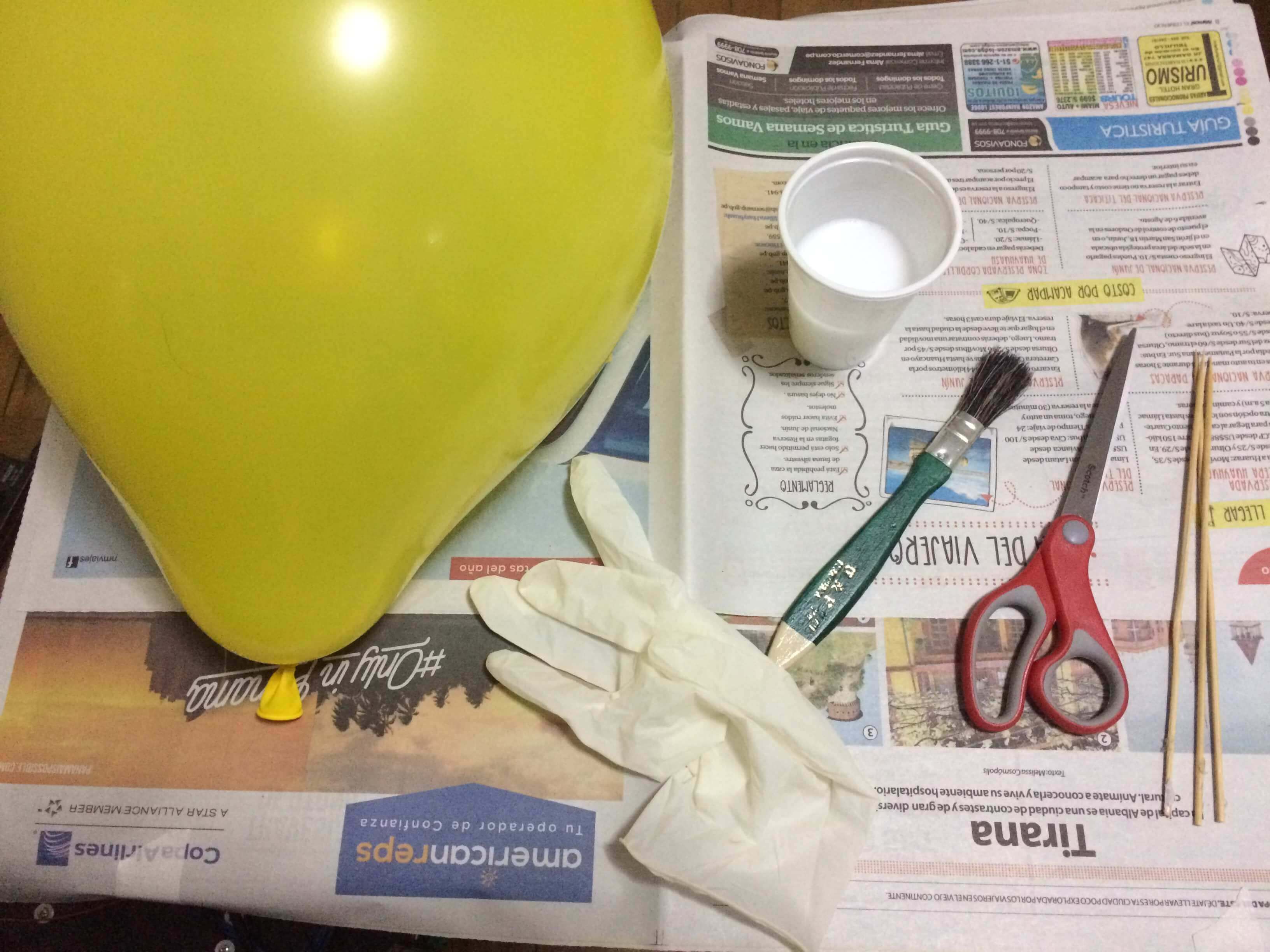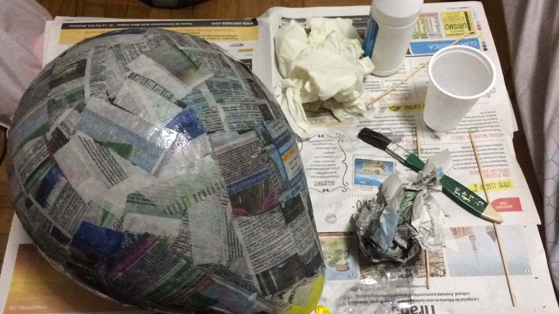 With a solution of water and glue, applied it on the ballon. Then, added pieces of paper, next a new layer of solution, to make the first layer stick better to the ballon.
