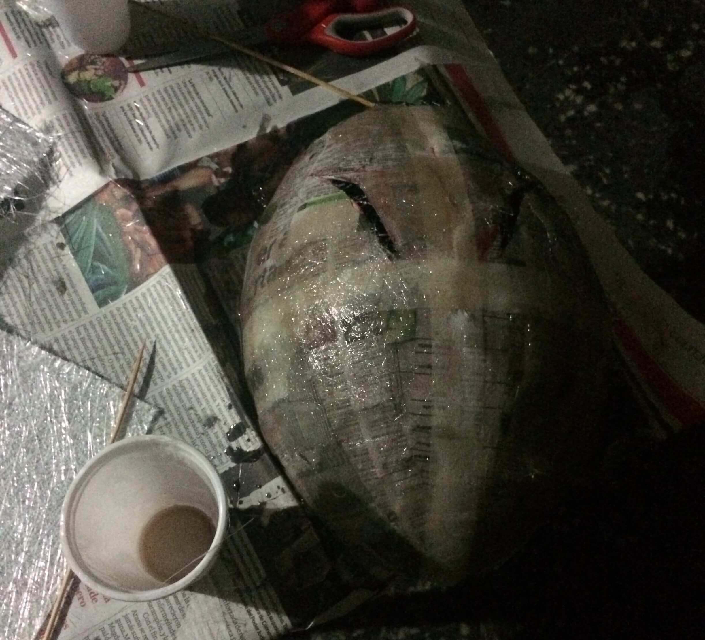 I wanted to do a mask for this assignment, so I used a balloon and newsprint paper to make the base.