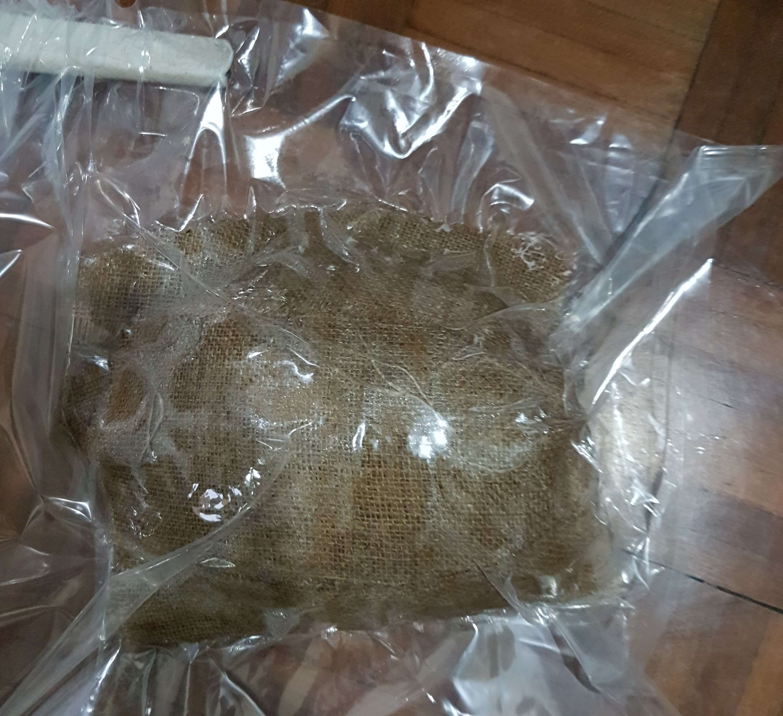 Repetead the same steps from glass fiber, but this time I put it on a vaccum bag and left it on the sun.