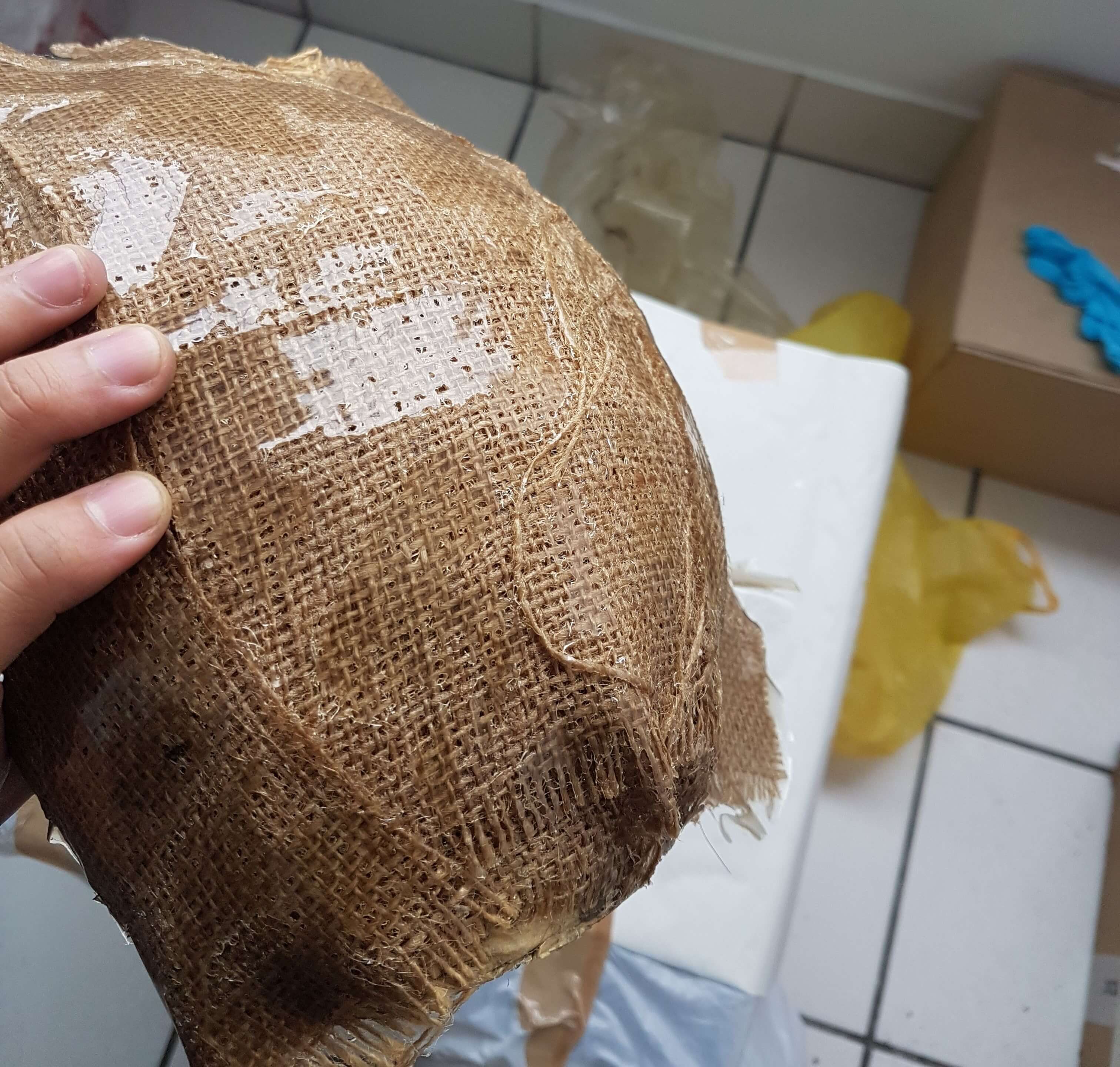When using vacumm bag, some resin was left on the mask with very spikey shape. It's important to handle it with gloves.
