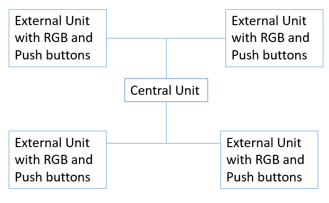 5 PCB will be made: 1 central unit which will be connecting and reciving data from other boards. 4 external boards where color will be display.