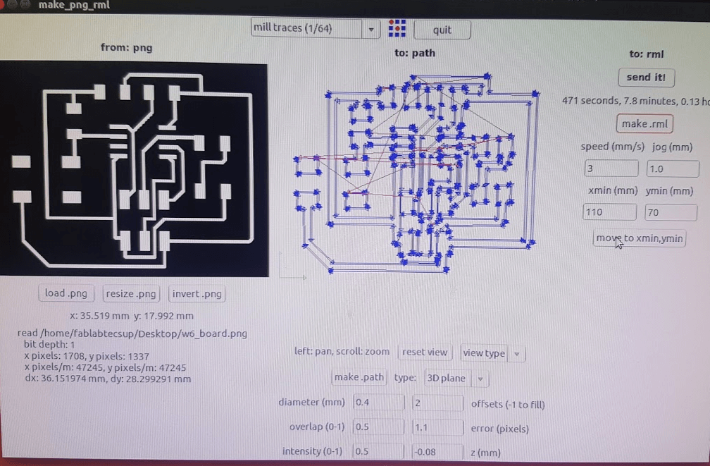 on make_png_rml. Once the next window pop up, load the board PNG file and set our tool diameter.